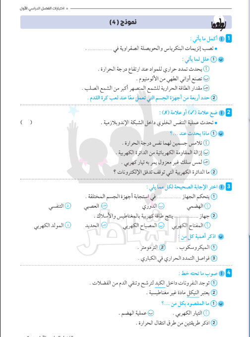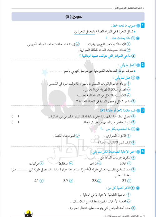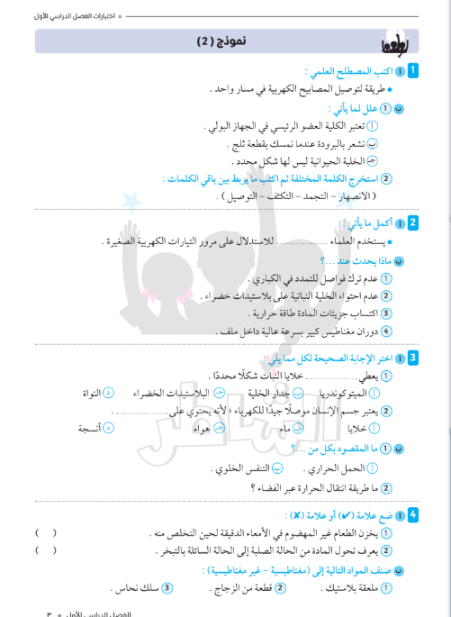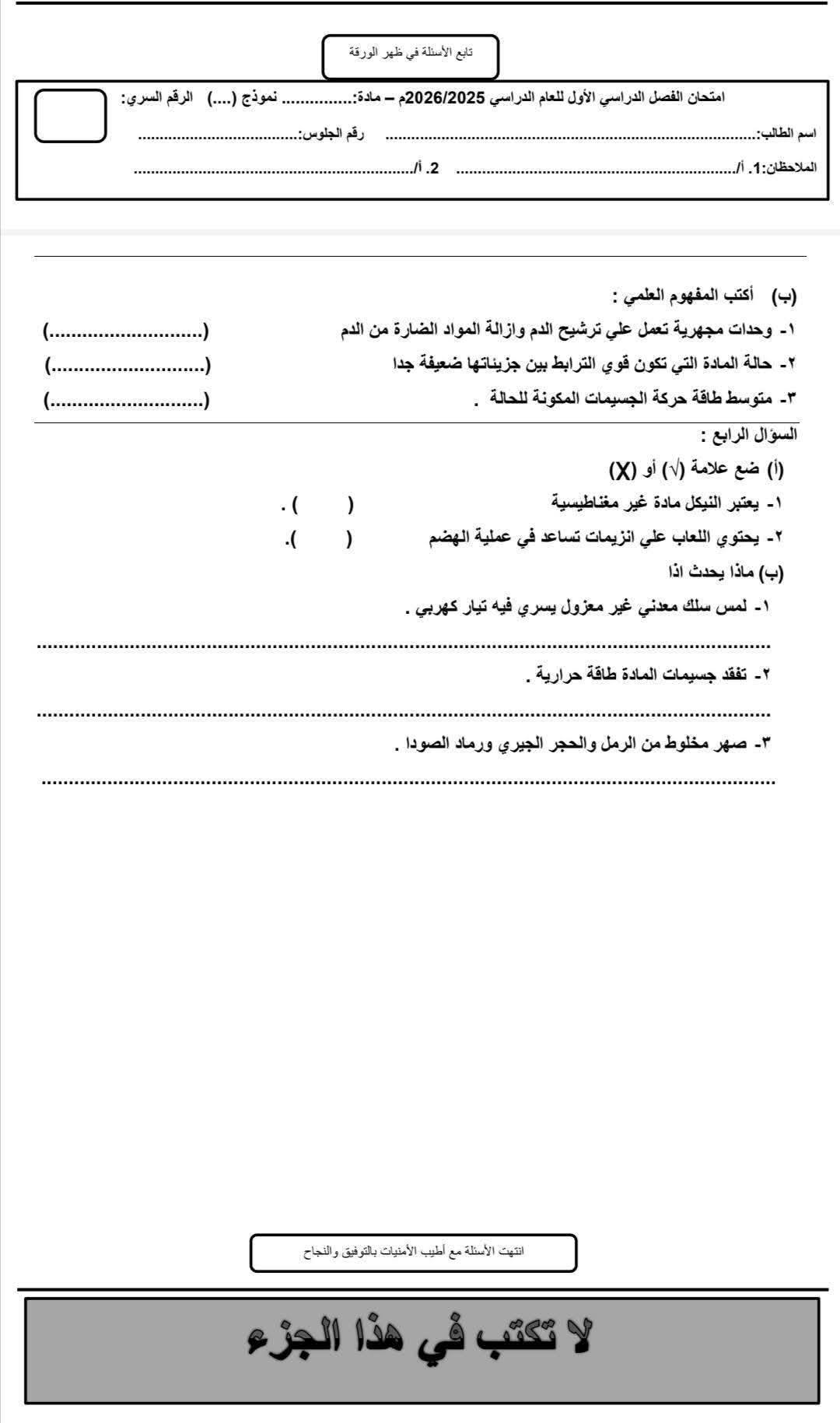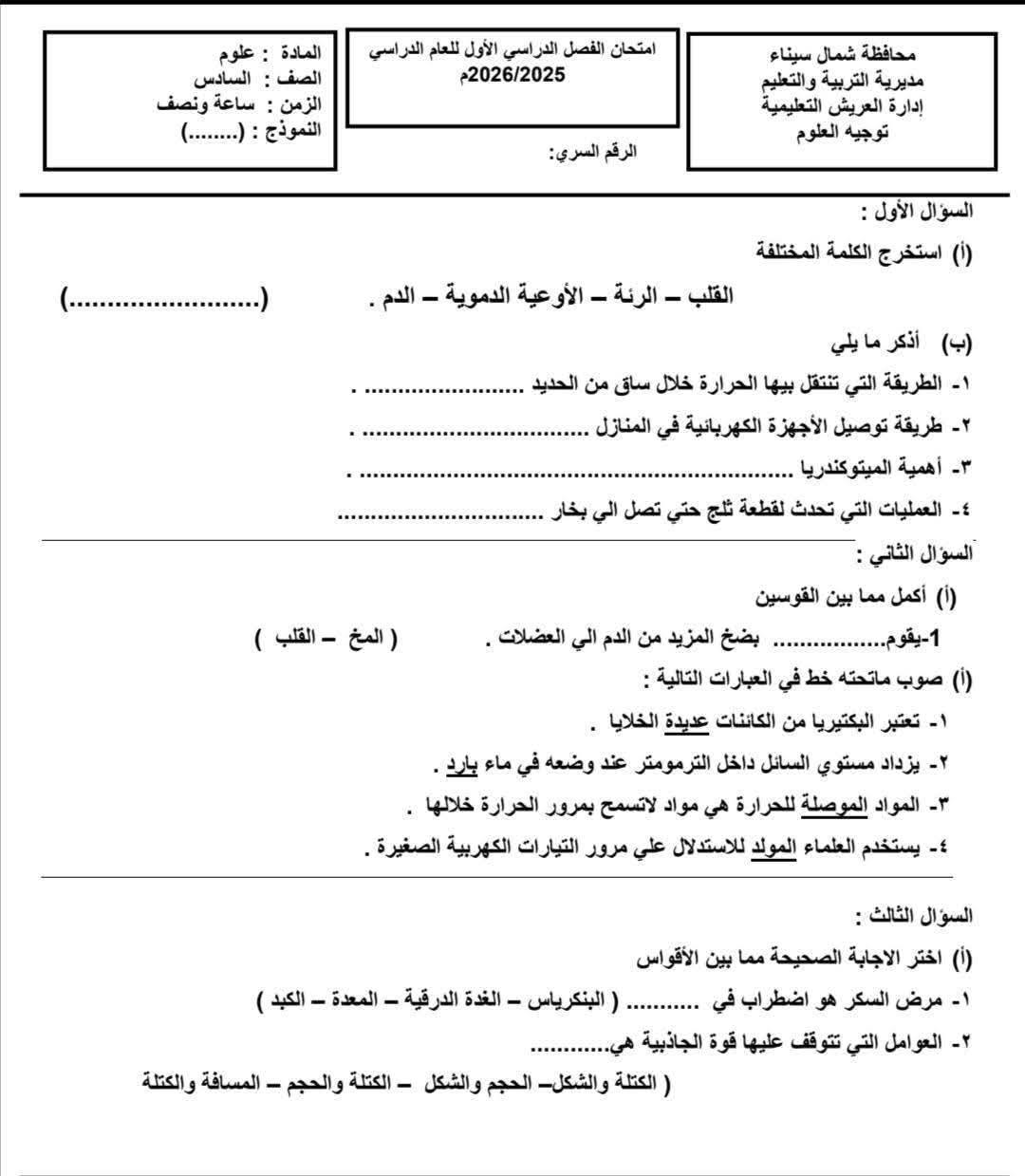 نماذج امتحانات علوم الصف السادس الابتدائي الترم الأول 2026
