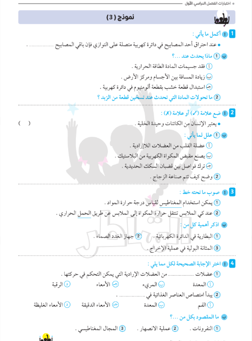 امتحانات علوم الصف السادس الابتدائي الترم الأول