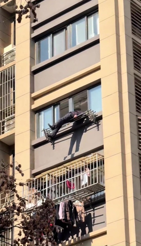 سقط رجل مسن من الطابق الخامس عشر، لكنه نجا بفضل منشر لتجفيف الملابس خارج نافذة في الطابق السابع لمبنى شاهق في مدينة نانجينج بمقاطعة جيانجسو الصينية.