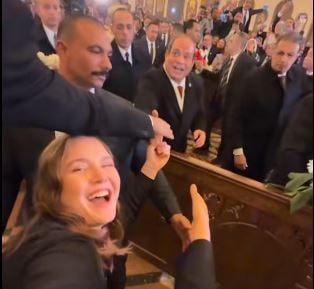 خطف مقطع فيديو عفوي أنظار رواد مواقع التواصل الاجتماعي، بعدما وثّق لحظة مصافحة شابة أوكرانية للرئيس عبد الفتاح السيسي، خلال مشاركته في احتفالات عيد الميلاد المجيد بكاتدرائية ميلاد المسيح في العاصمة الإدارية الجديدة، حيث حصد الفيديو ملايين المشاهدات وتفاعلًا واسعًا.