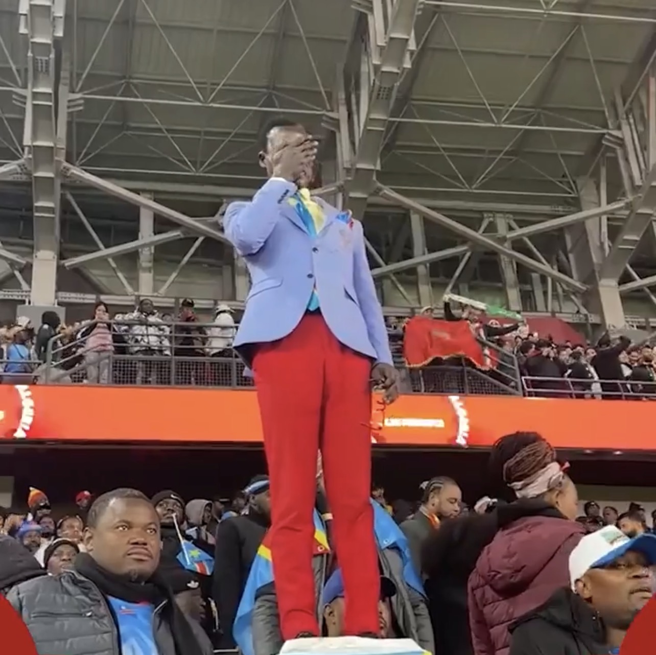 مبولادينجا برز كرمز سياسي وتاريخي في البطولة، حيث كان يقف ساكنًا طوال 90 دقيقة مثل التمثال في المدرجات، مجسّدًا حركة باتريس لومومبا، رئيس وزراء الكونغو الديمقراطية الأسبق، الذي يمثل رمز النضال والكفاح ومواجهة المستحيل.