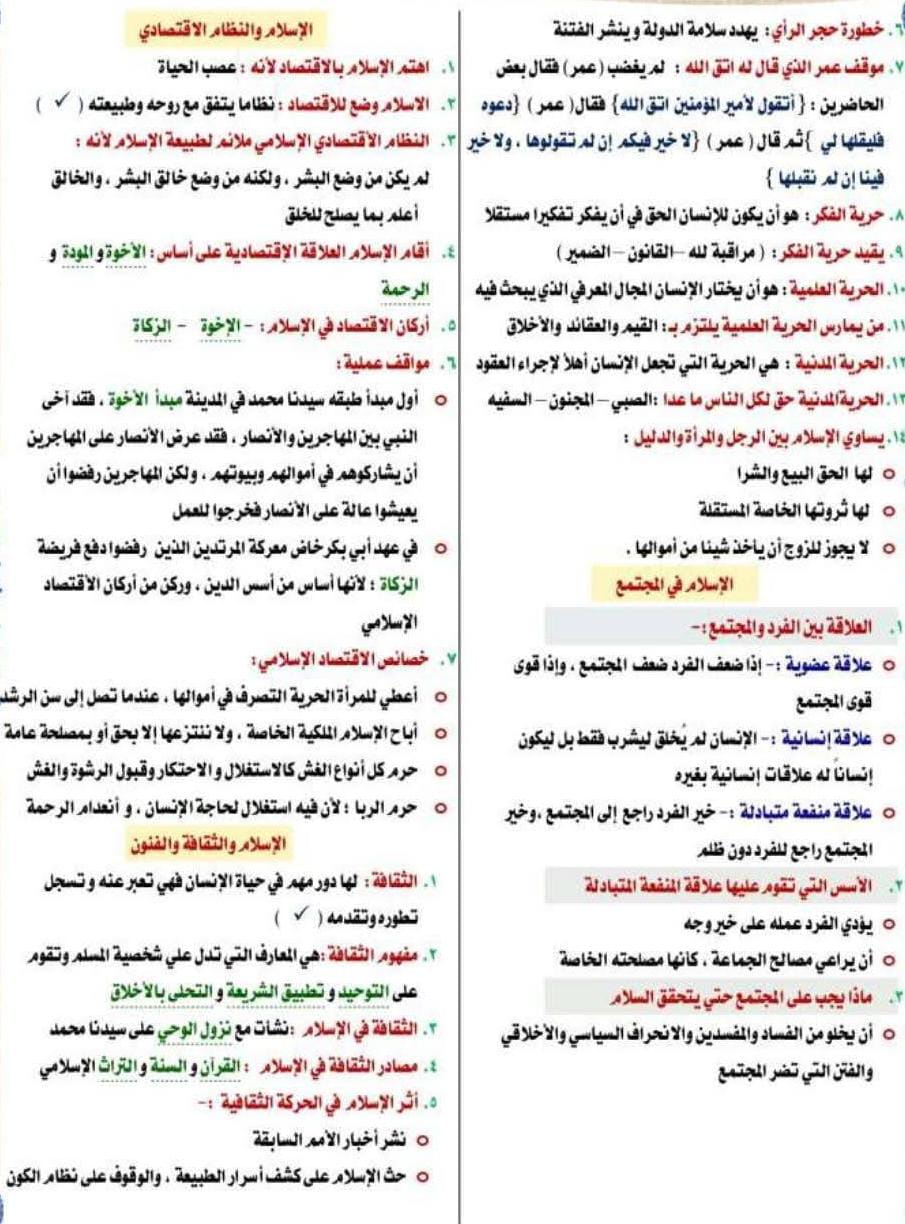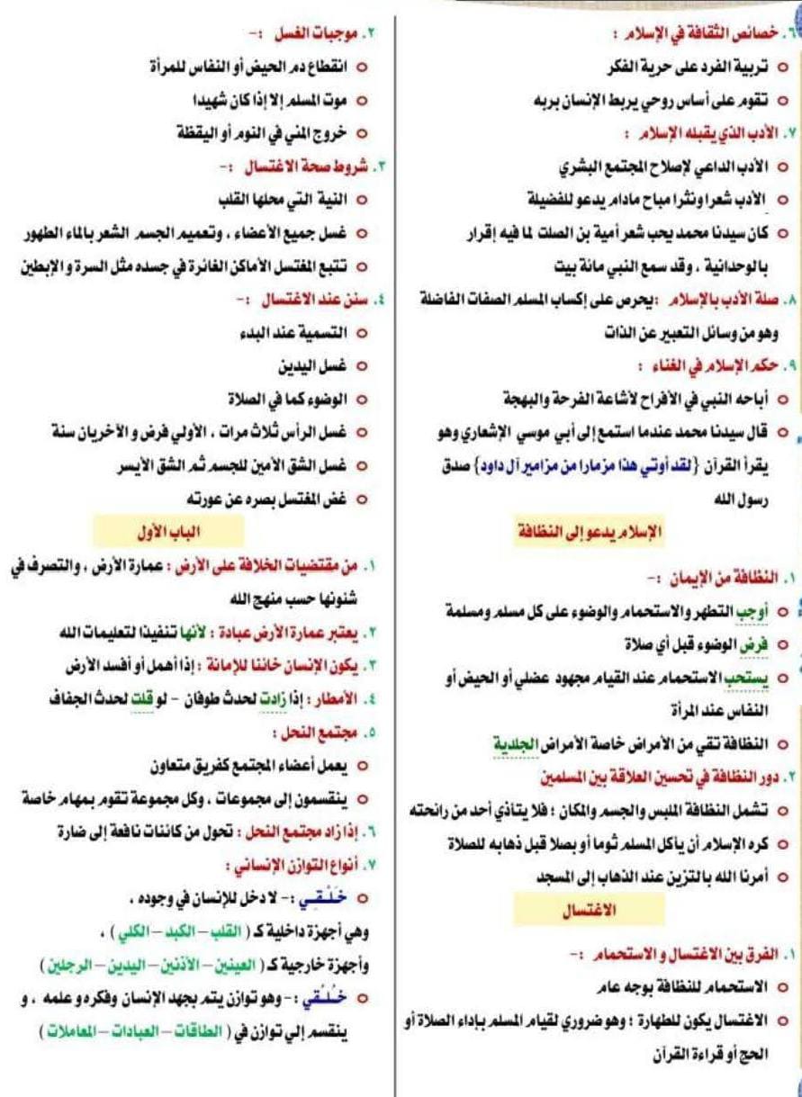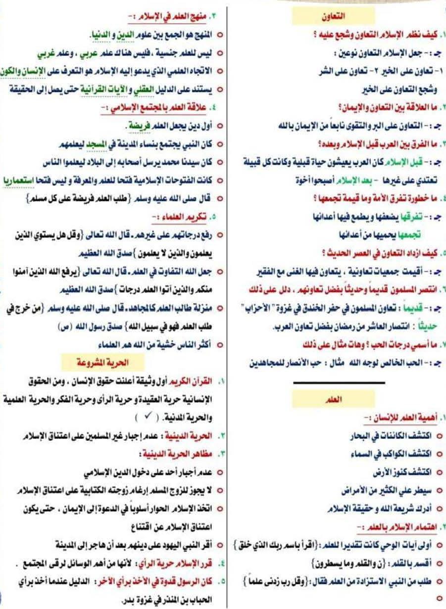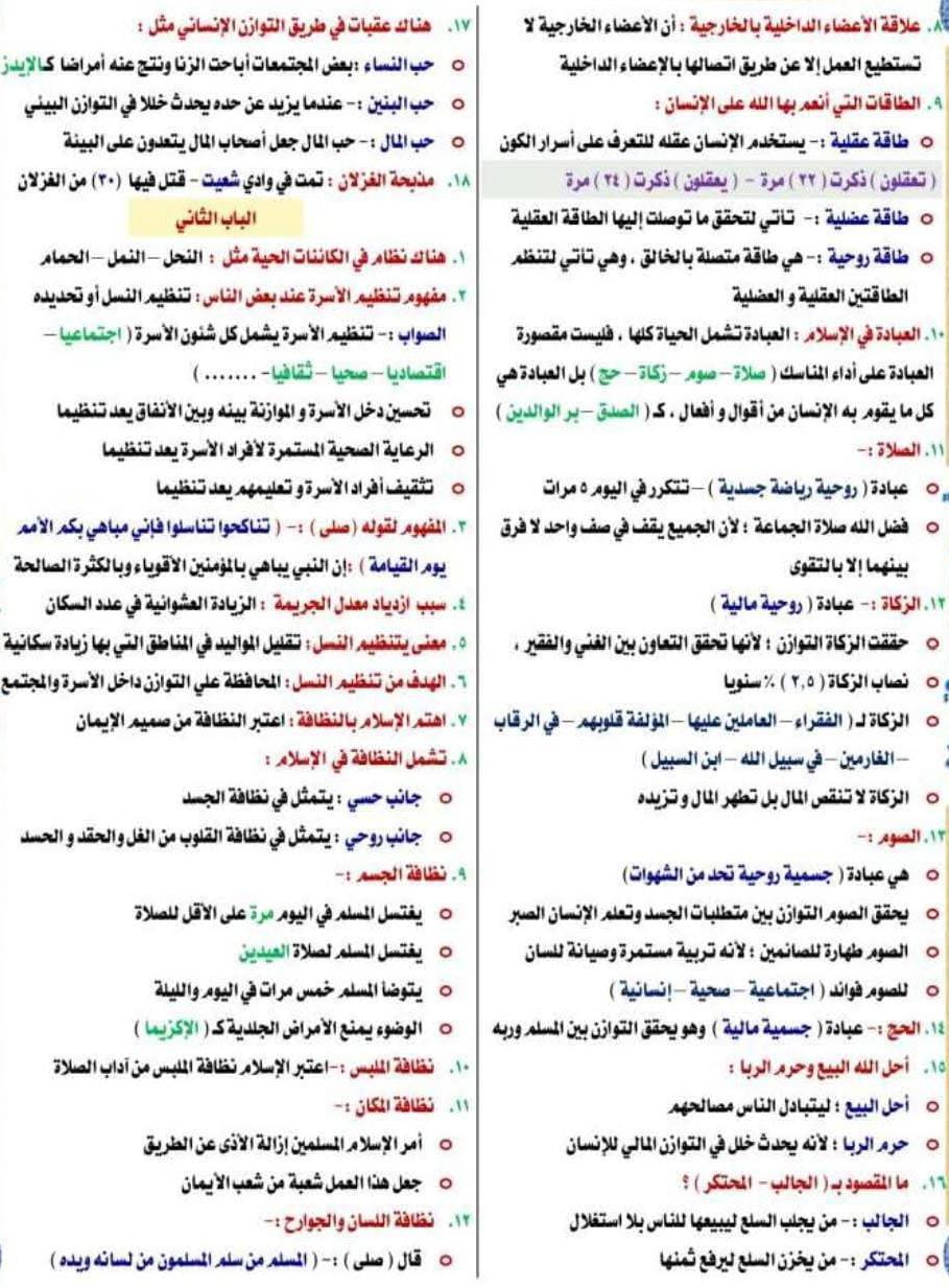 مراجعة دين للصف الثالث الإعدادي الترم الأول 2026، شاملة ومختصرة لجميع دروس المنهج