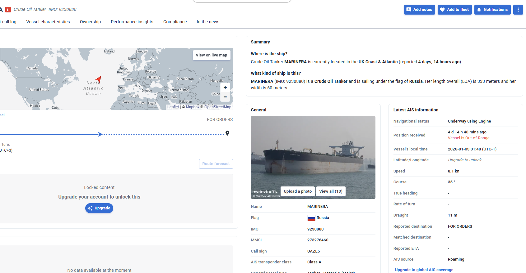 في بداية عام 2026، أقدمت السفينة على خطوة استراتيجية، حيث غيّرت اسمها إلى MARINERA في 1 يناير، وتم تسجيلها رسميًا تحت العلم الروسي في 4 يناير، هذه الخطوة دفعت روسيا لتقديم شكوى دبلوماسية رسمية للولايات المتحدة، مطالبة بوقف متابعة السفينة، ونشرت روسيا غواصة وأصول بحرية لمرافقتها، في مشهد يعكس توتر العلاقات بين القوى الكبرى بسبب الموارد البحرية والسيطرة على النفط.