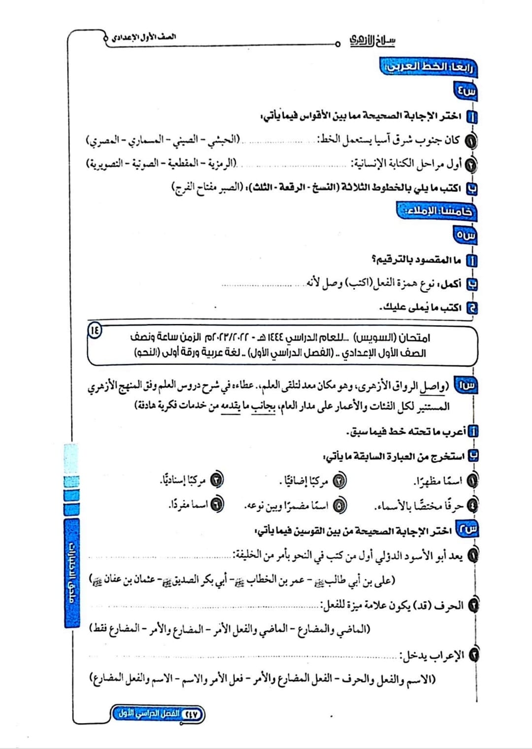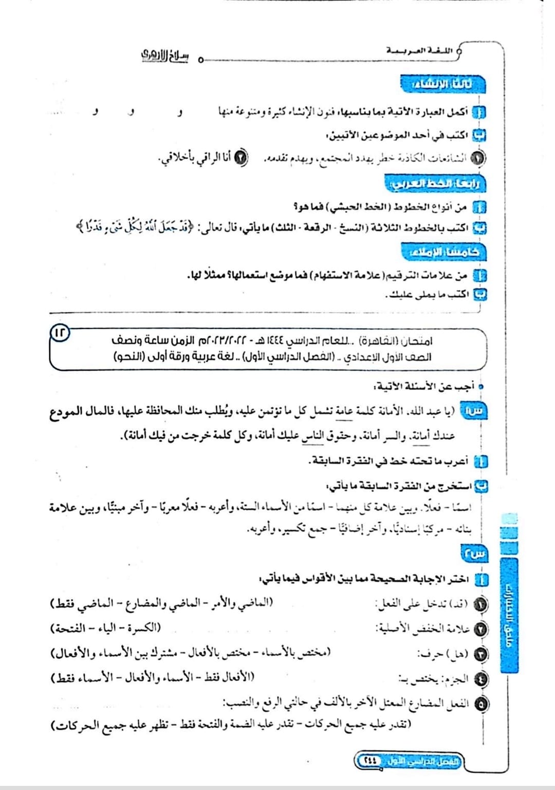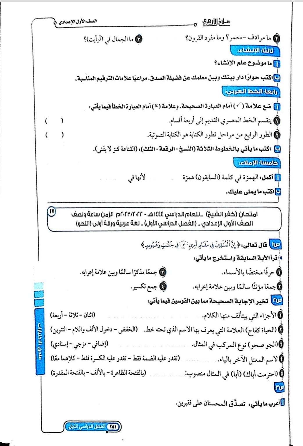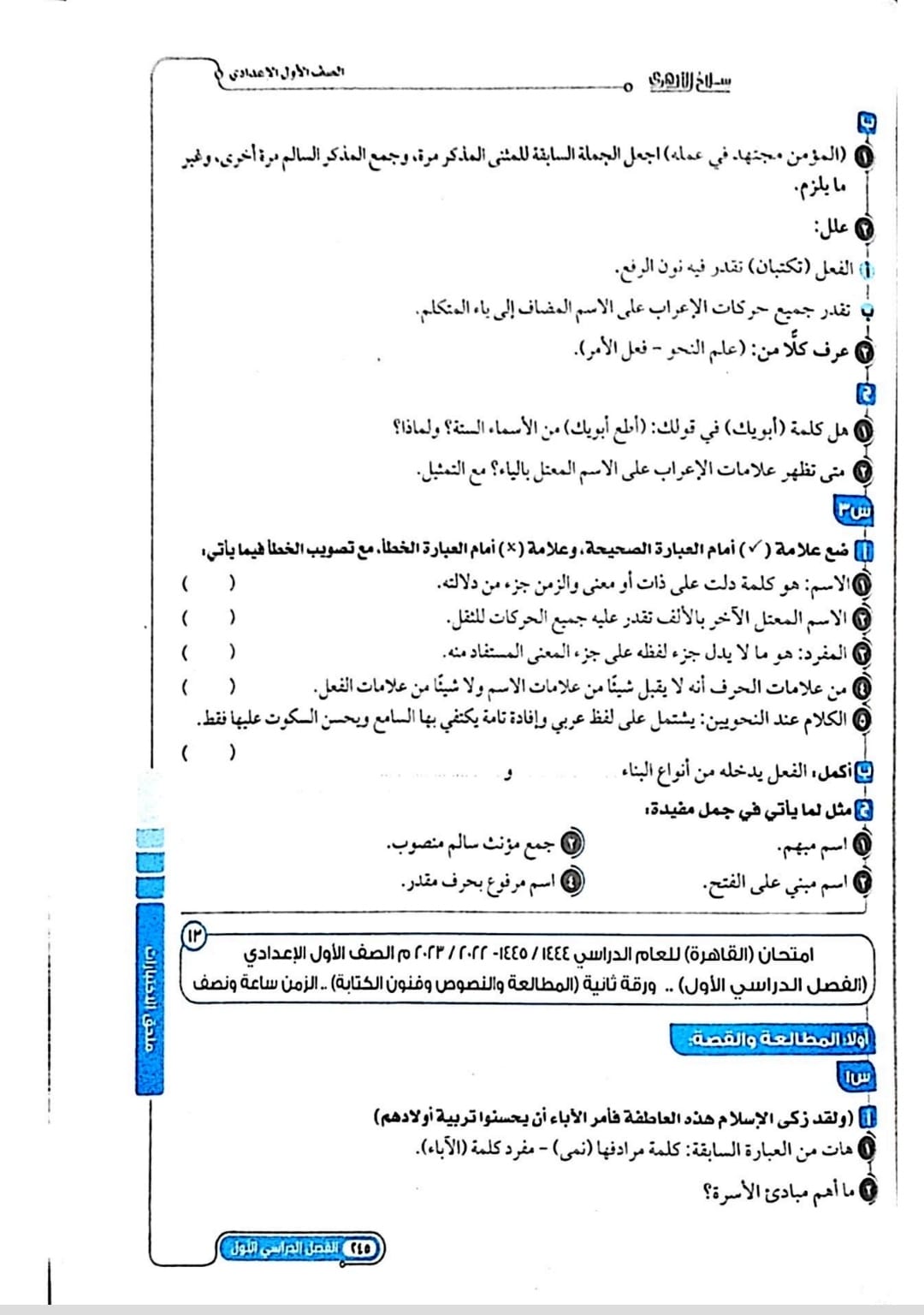 مراجعة عربي أولى إعدادي PDF ترم أول 2026، مراجعة ليلة الامتحان