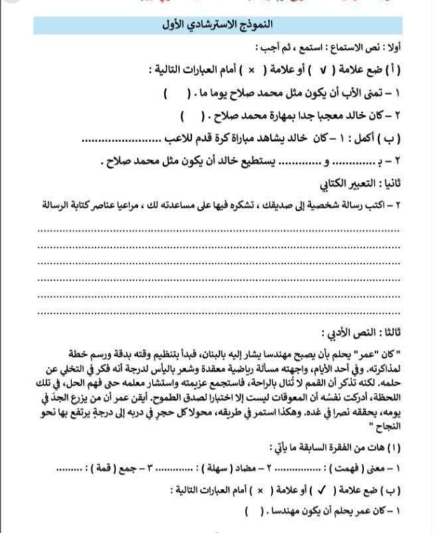 ويستطيع طلاب الصف الرابع الابتدائي الاطلاع على نماذج امتحانات اللغة العربية الترم الأول 2026 من خلال الاطلاع على الصور التالية: