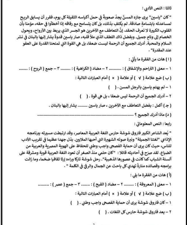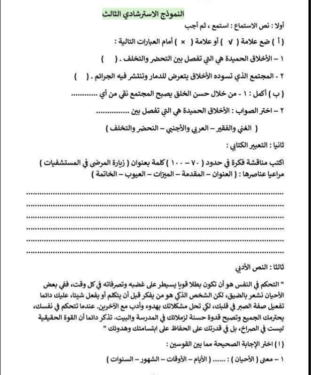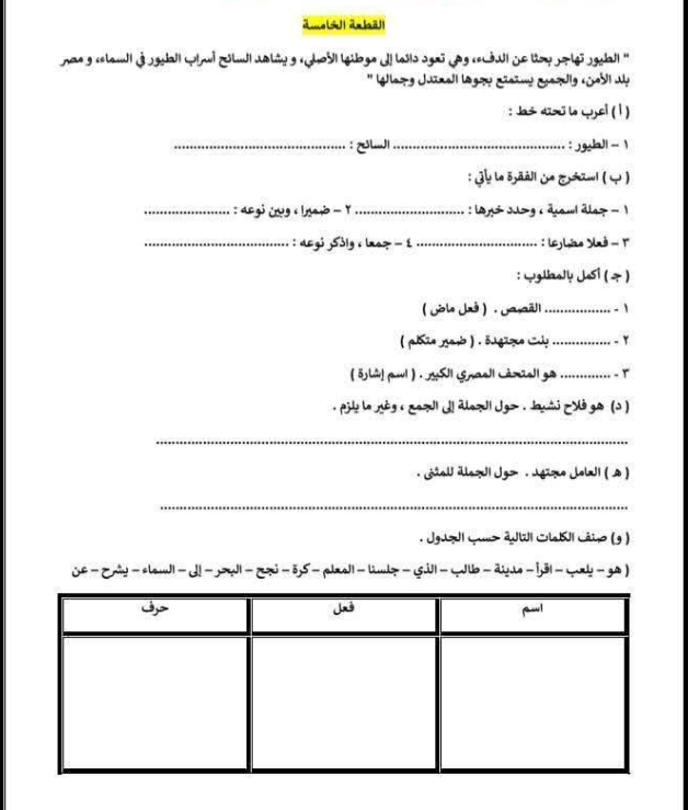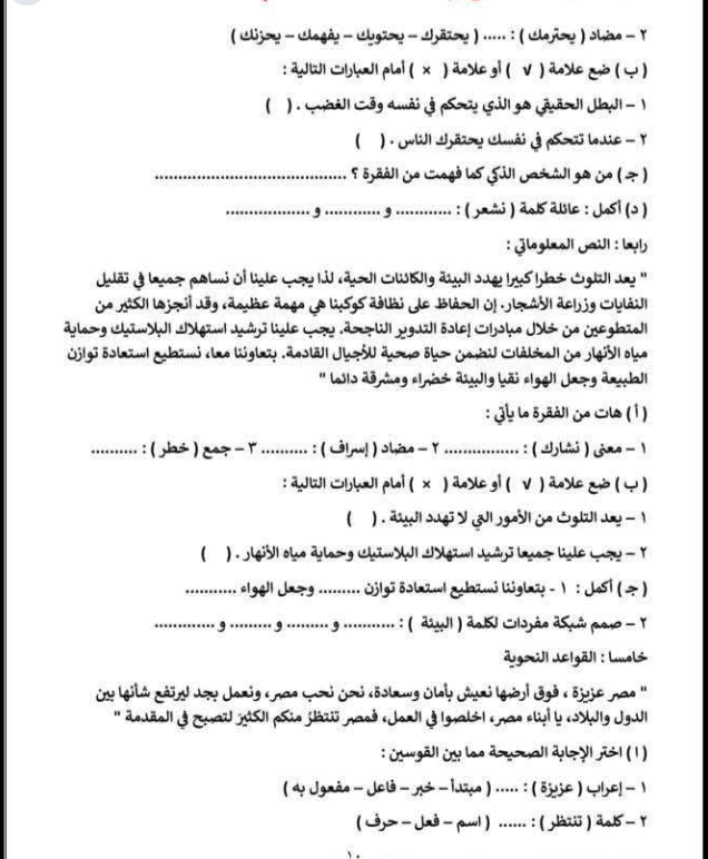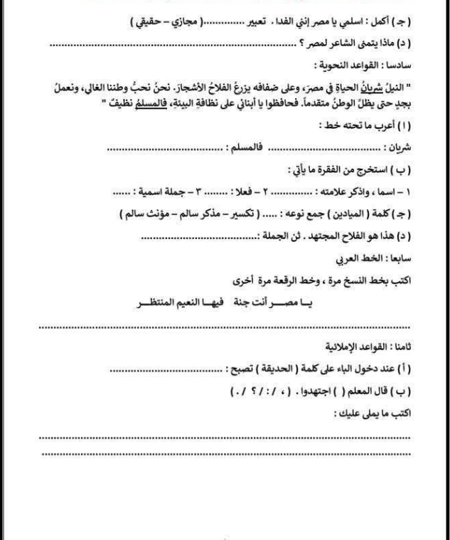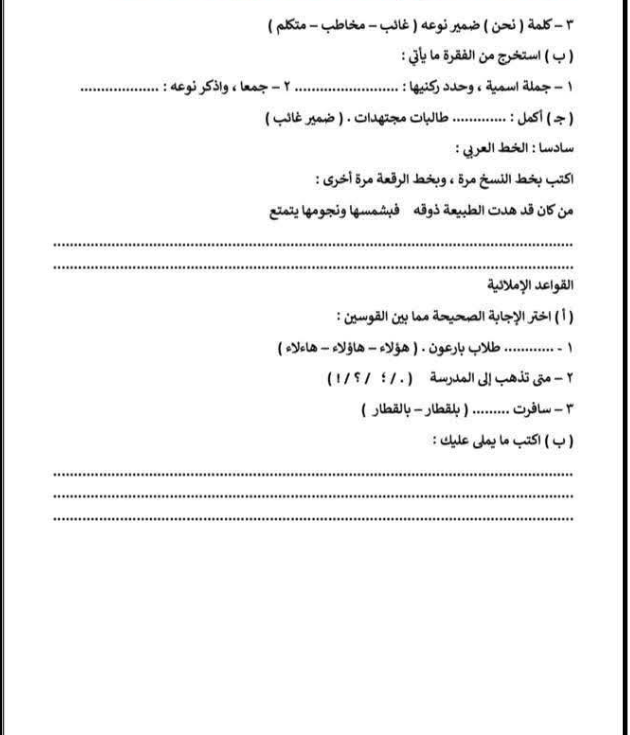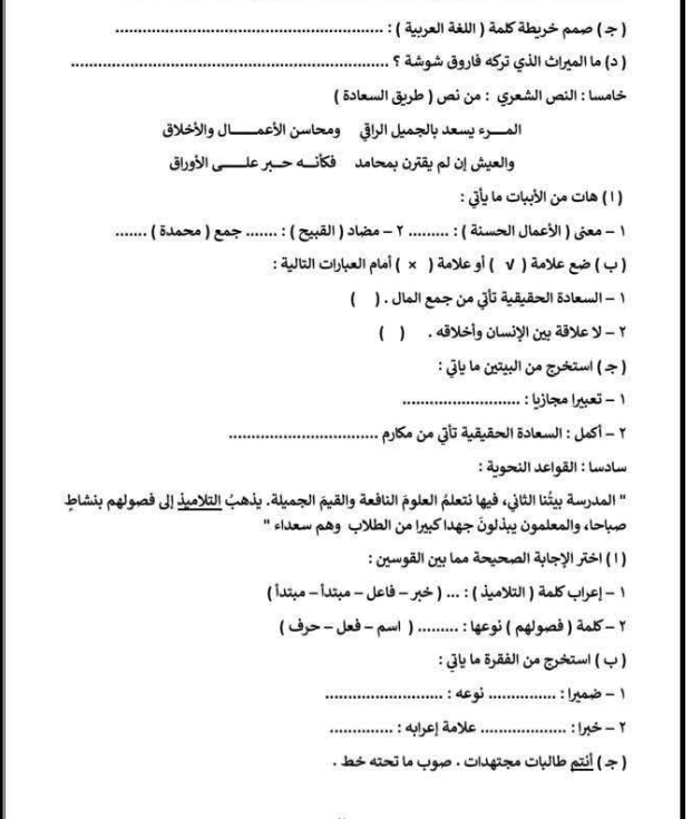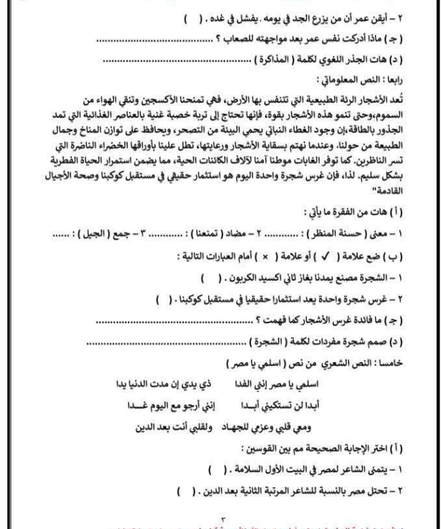 مراجعة عربي الصف الثالث الابتدائي، أهم الأسئلة