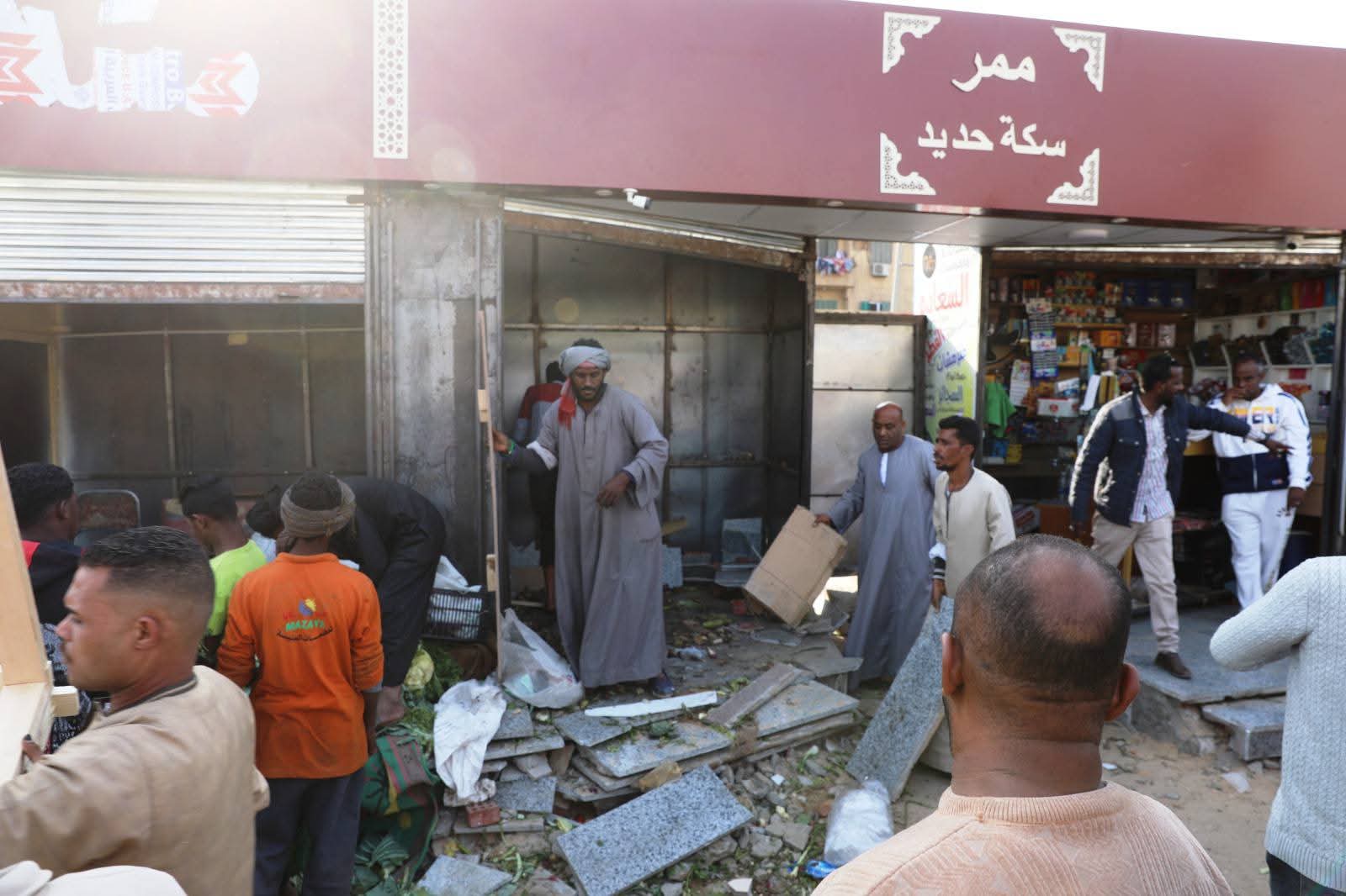 في أسوان، حملة مكبرة لإزالة الأكشاك العشوائية بجوار السكة الحديد