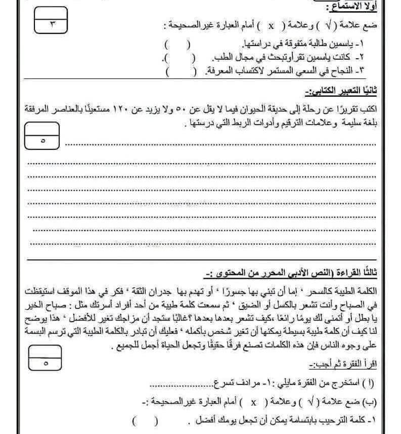 امتحان لغة عربية للصف السادس الابتدائي الترم الأول 2026