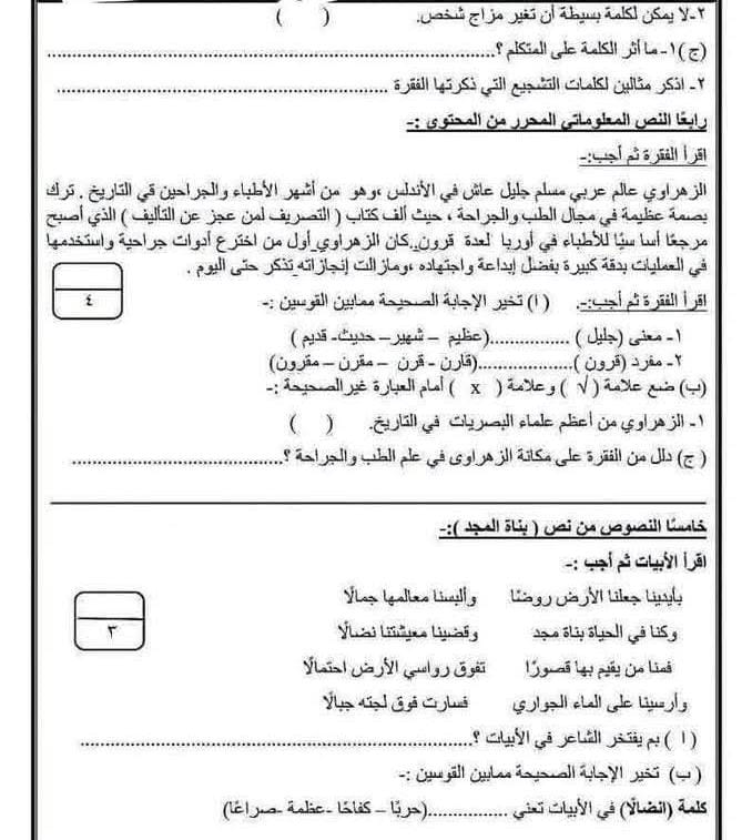 ونستعرض خلال الصور التالية مراجعة لغة عربية للصف السادس الابتدائي الترم الأول 2026: