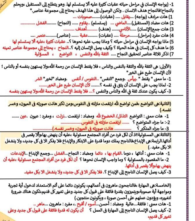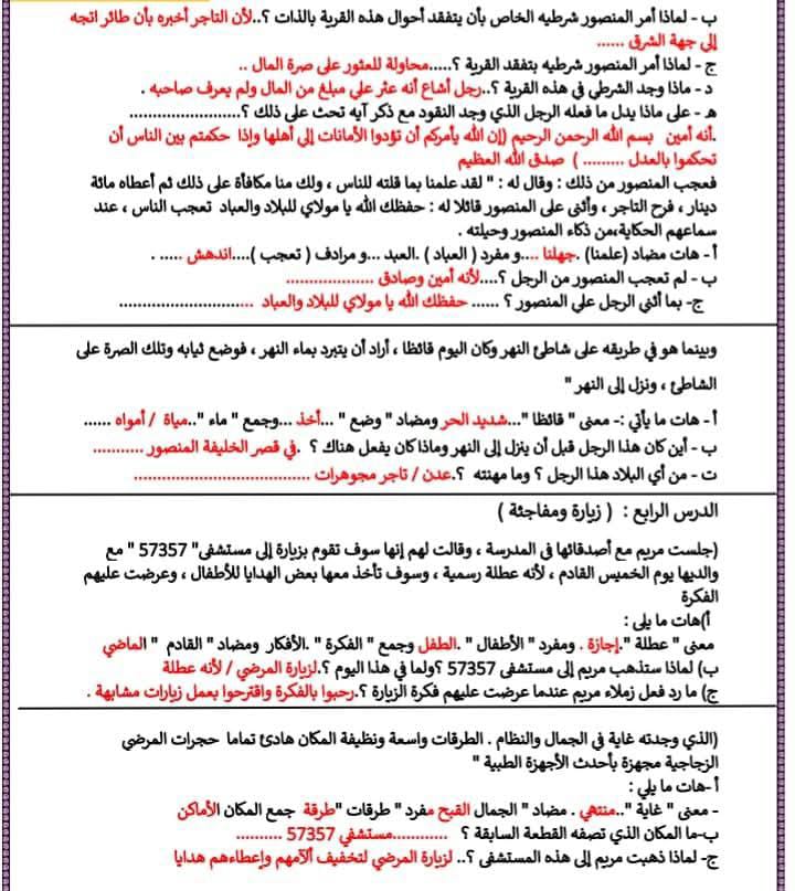 تشمل المراجعة أهم الدروس والنصوص والقواعد اللغوية، إلى جانب تدريبات وأسئلة متوقعة، مما يساعد الطالب على المذاكرة بطريقة منظمة ويعزز ثقته أثناء أداء الامتحان.