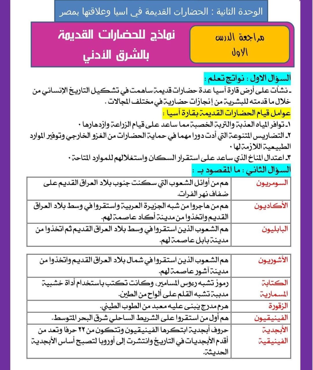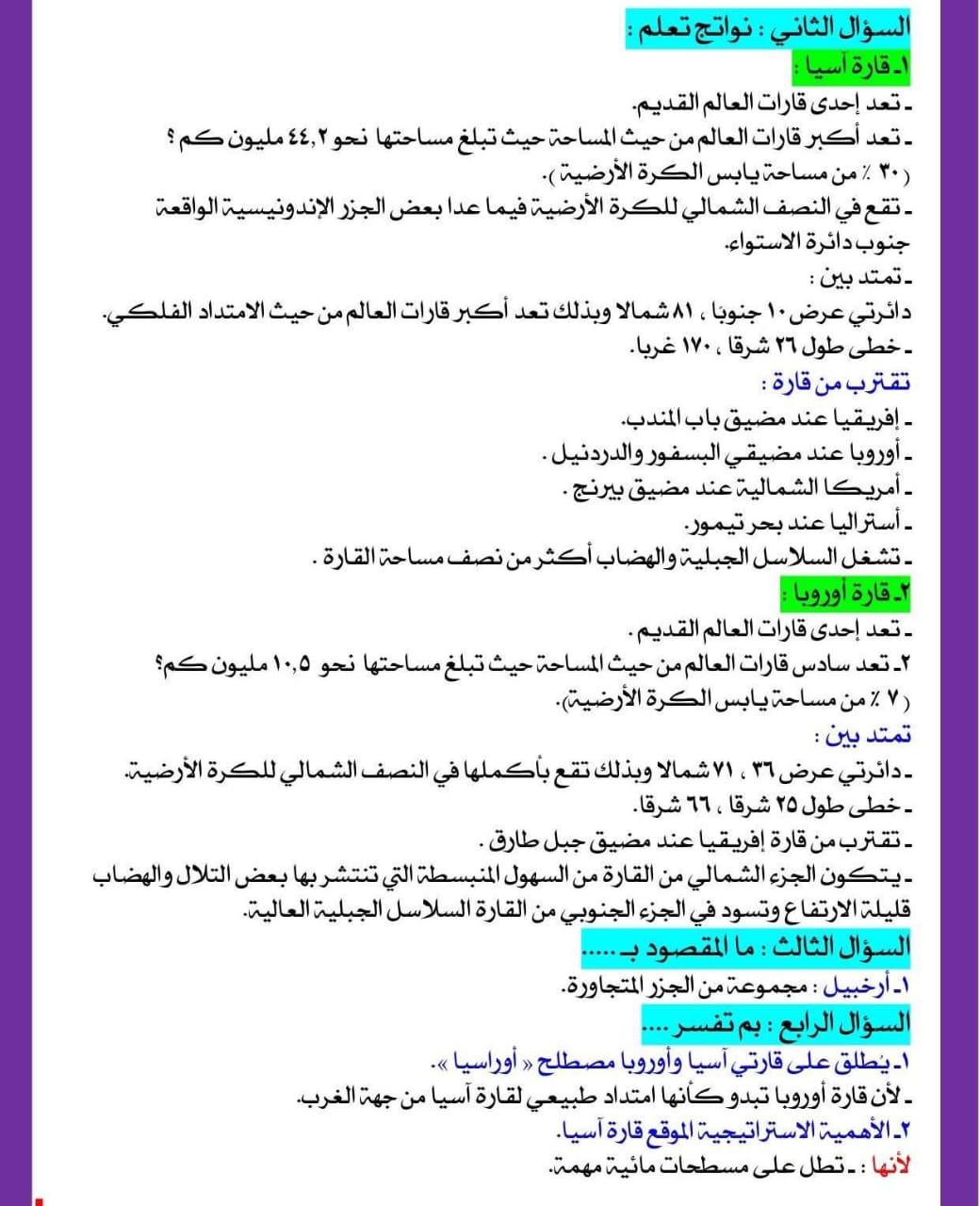 مراجعة دراسات الصف الثاني الإعدادي الترم الأول 2026، نماذج أسئلة وإجابات