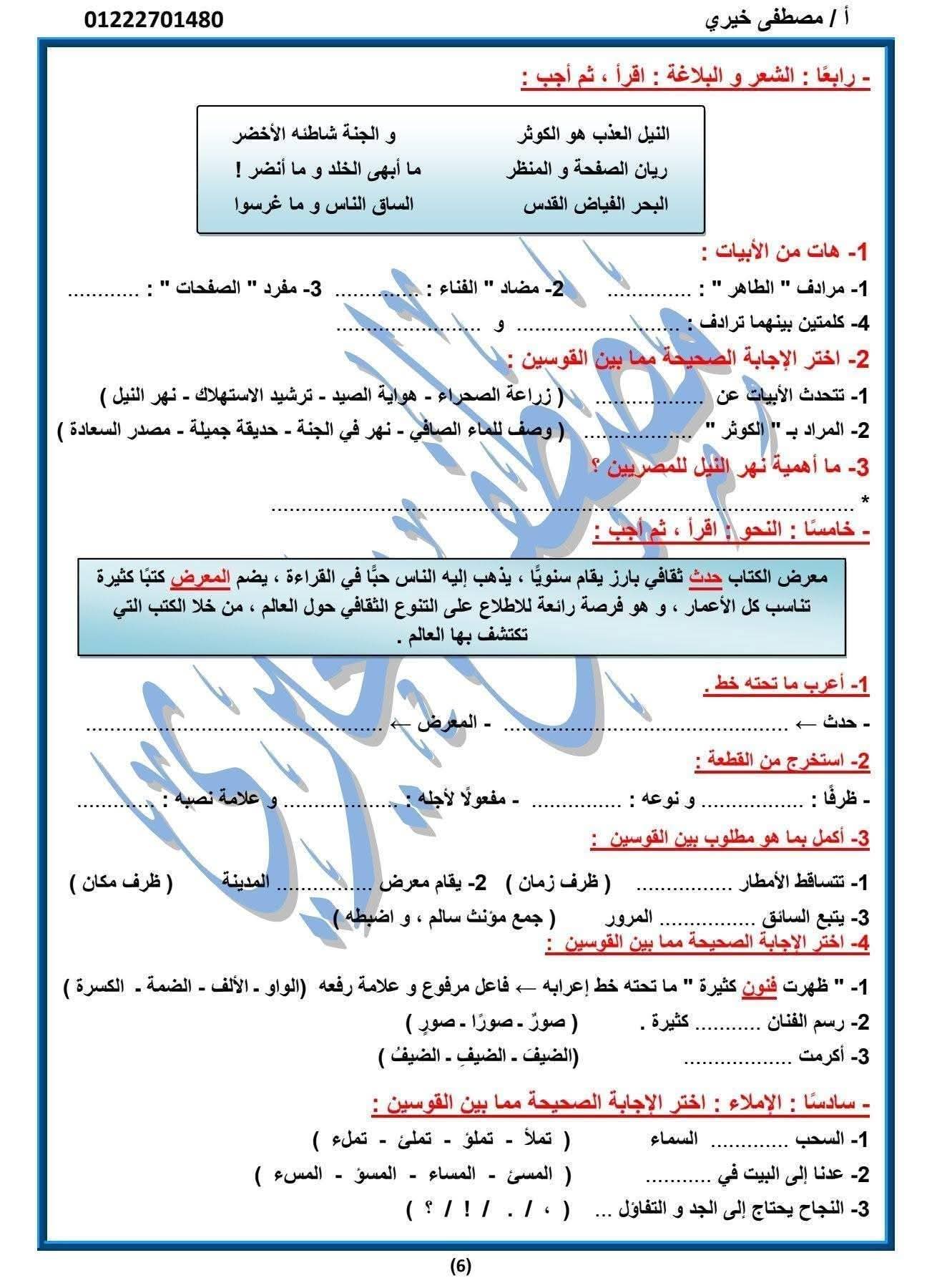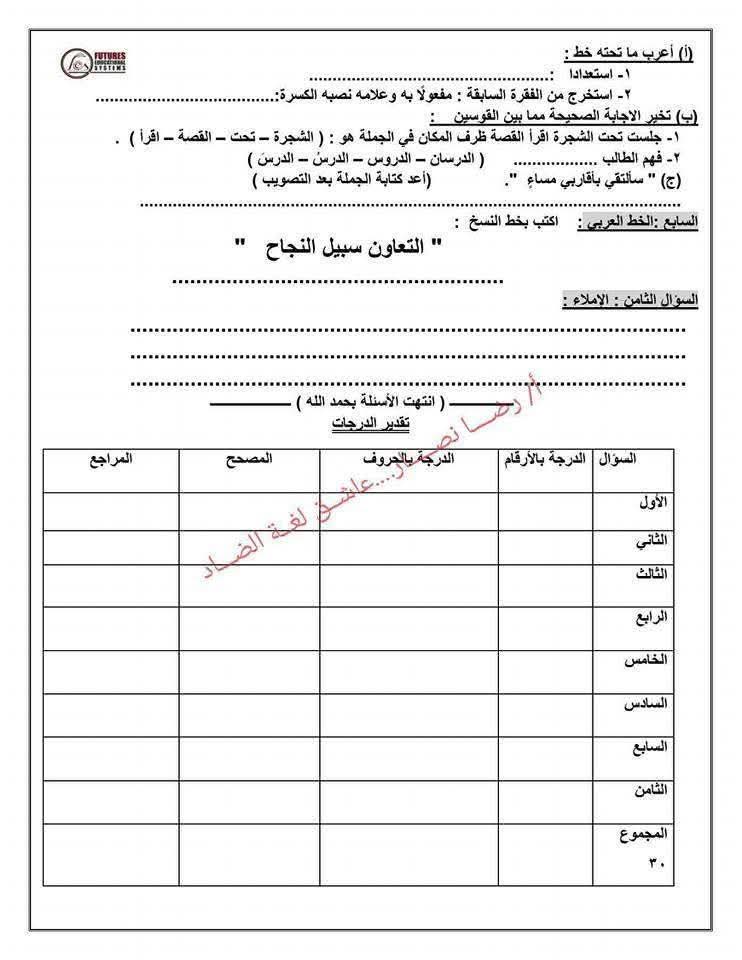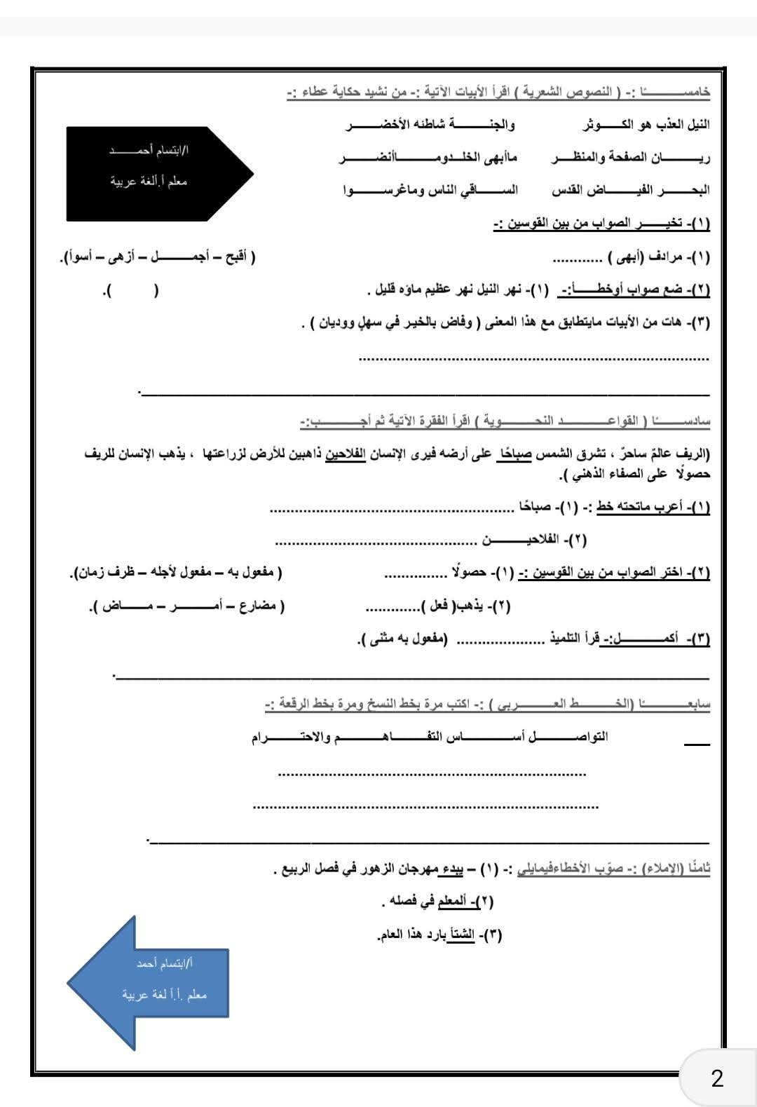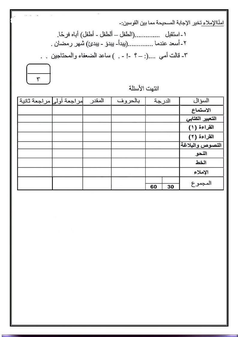 مراجعة عربي الصف الثالث الابتدائي، أهم الأسئلة