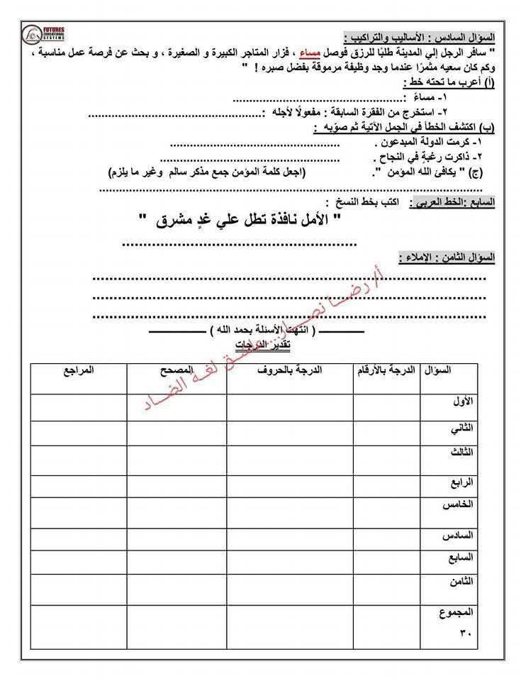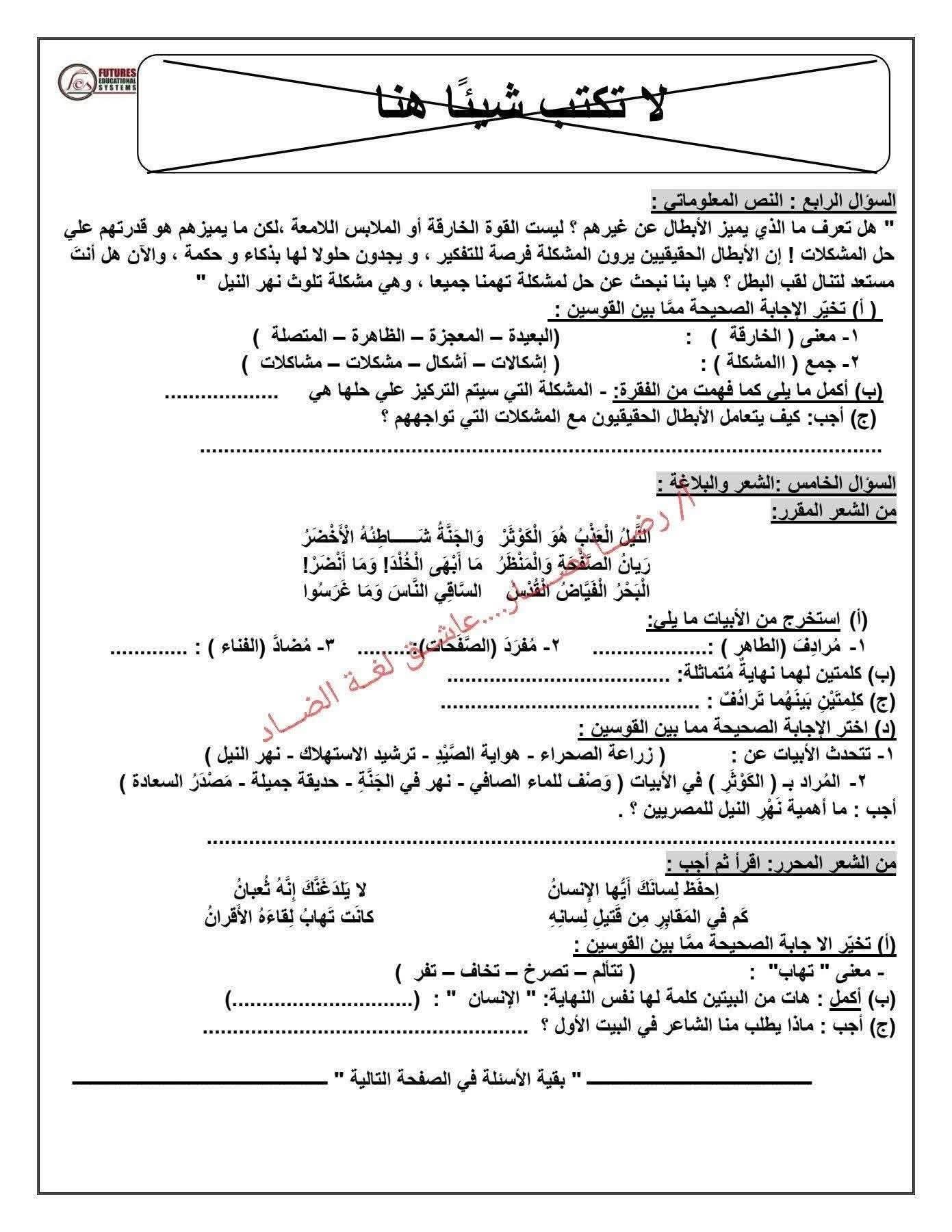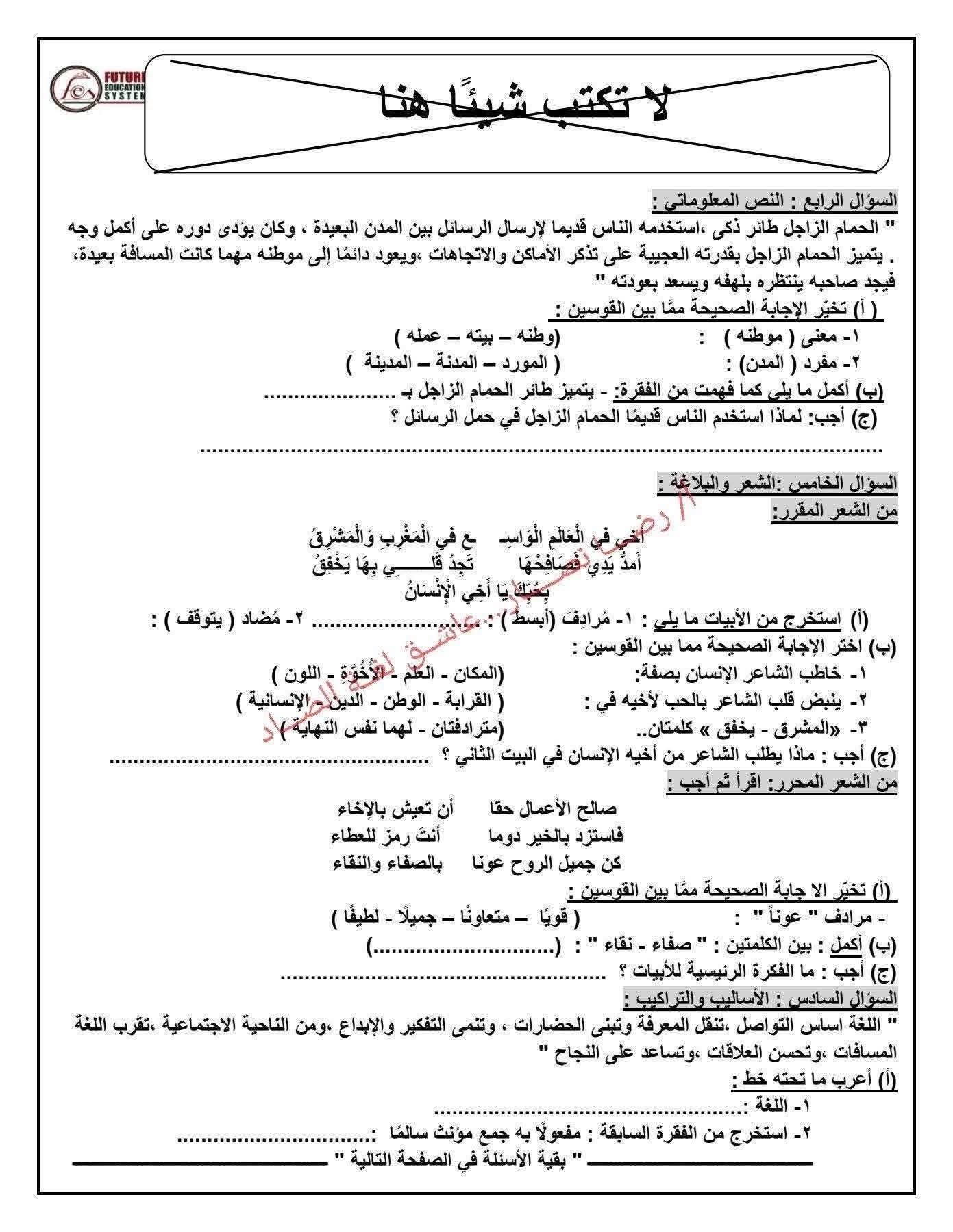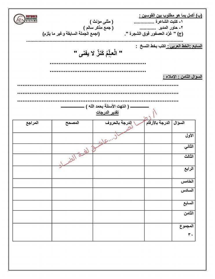 مراجعة عربي الصف الثالث الابتدائي، أهم الأسئلة