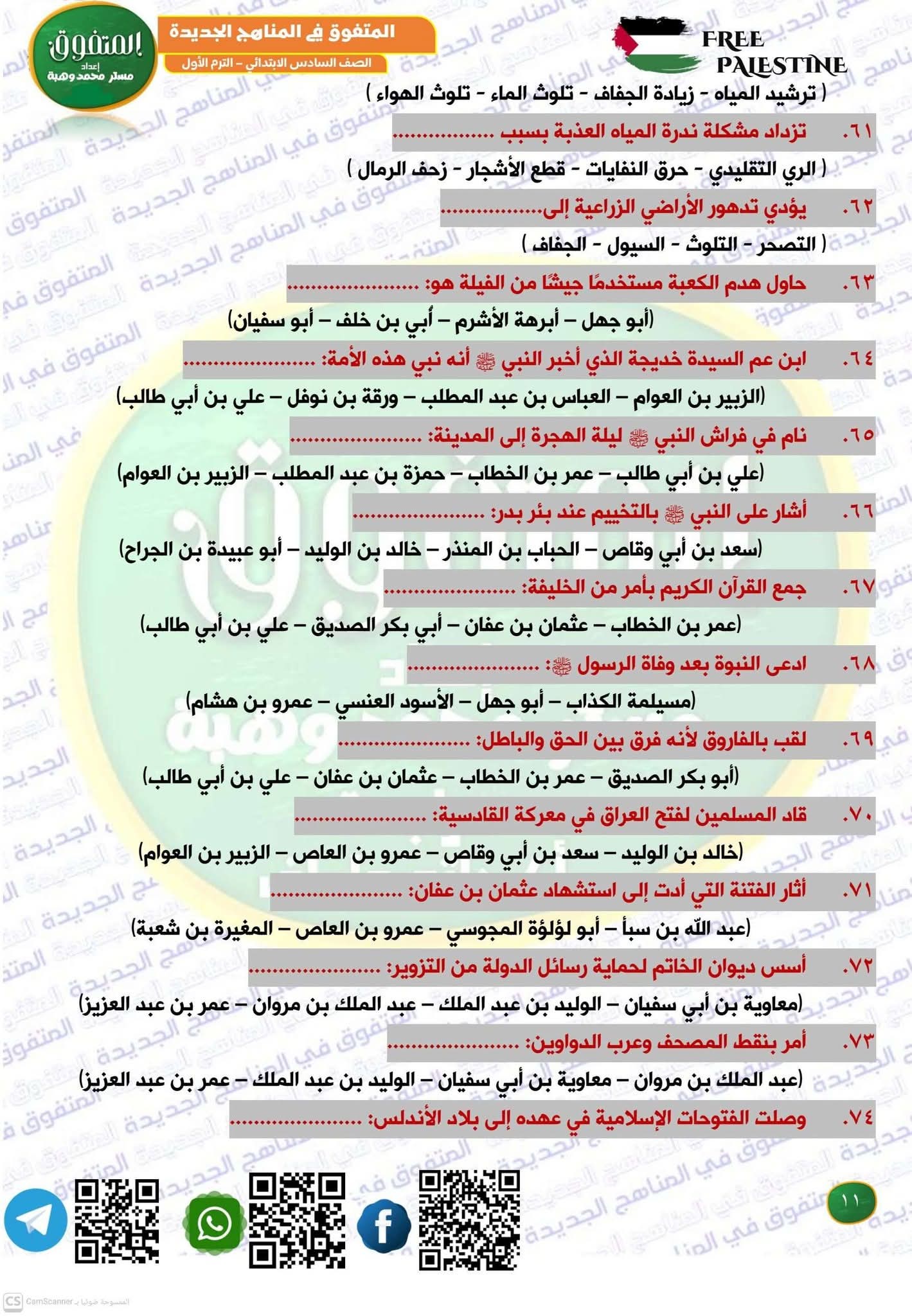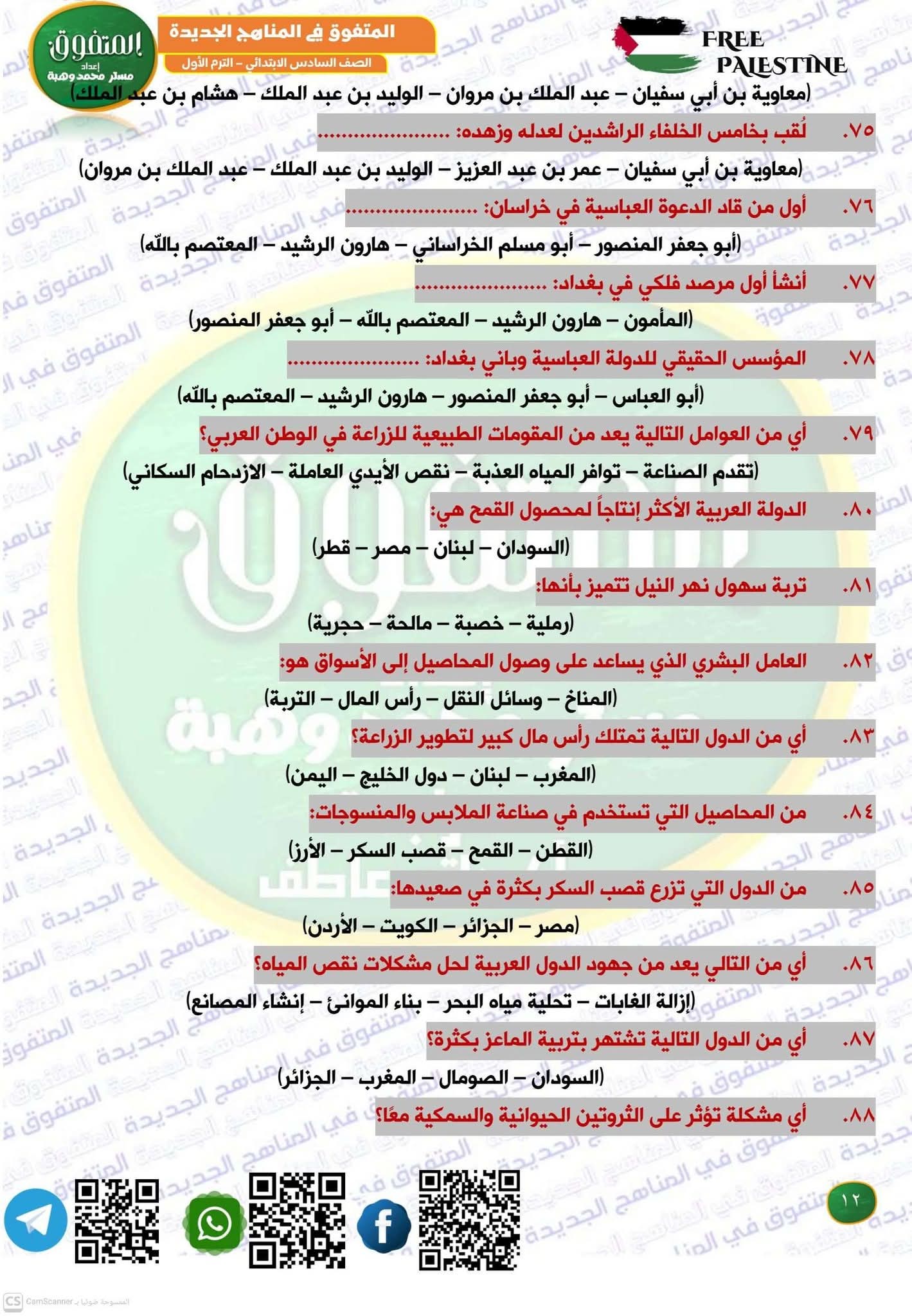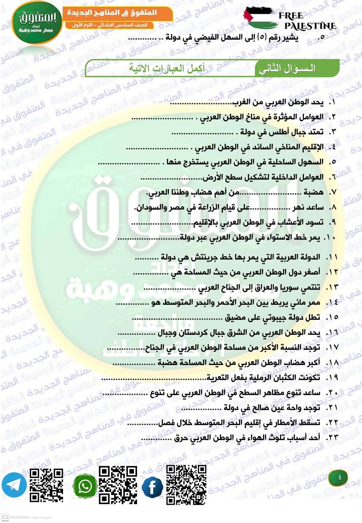 مراجعة دراسات الصف الرابع الابتدائي الترم الأول، أهم الأسئلة