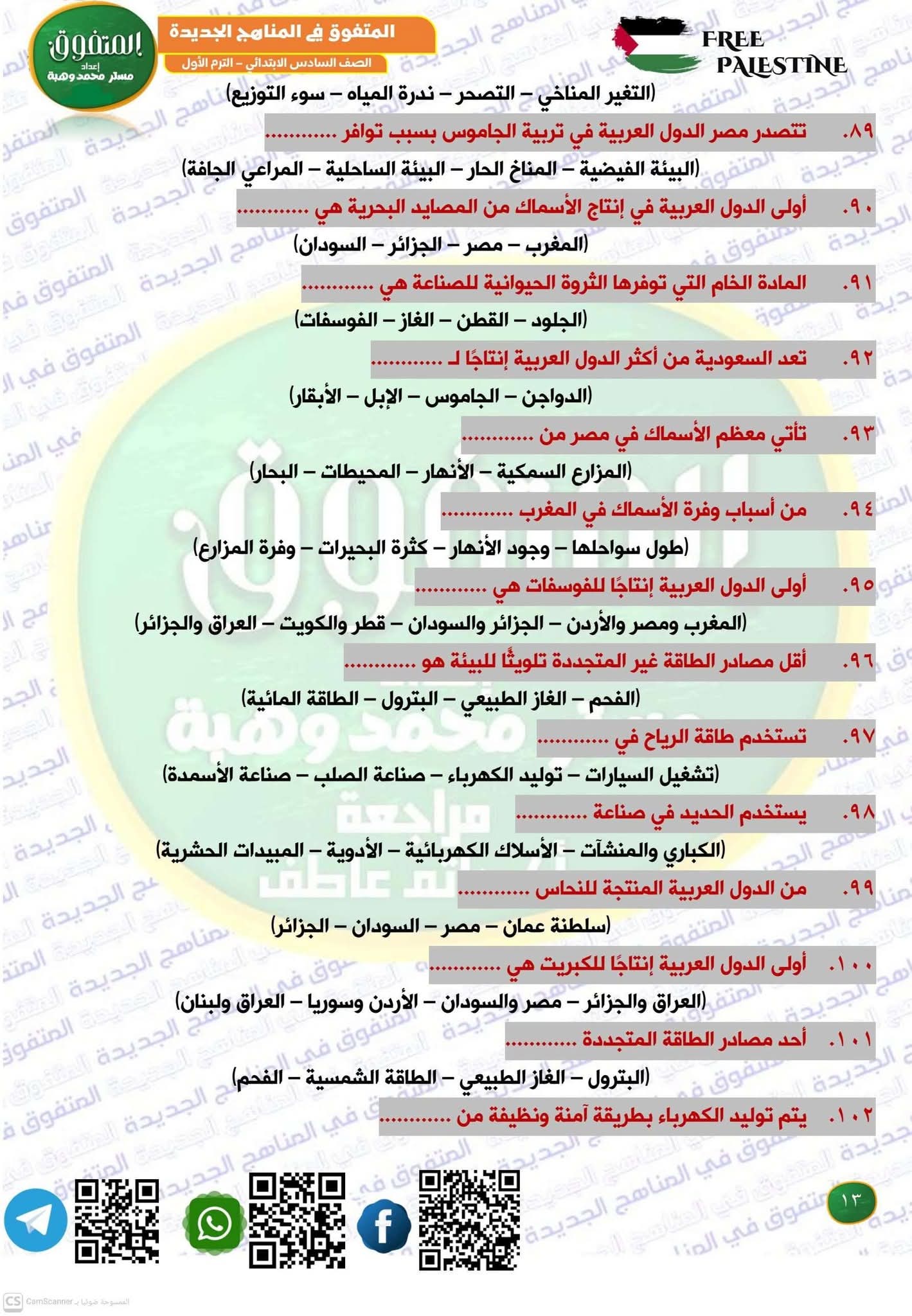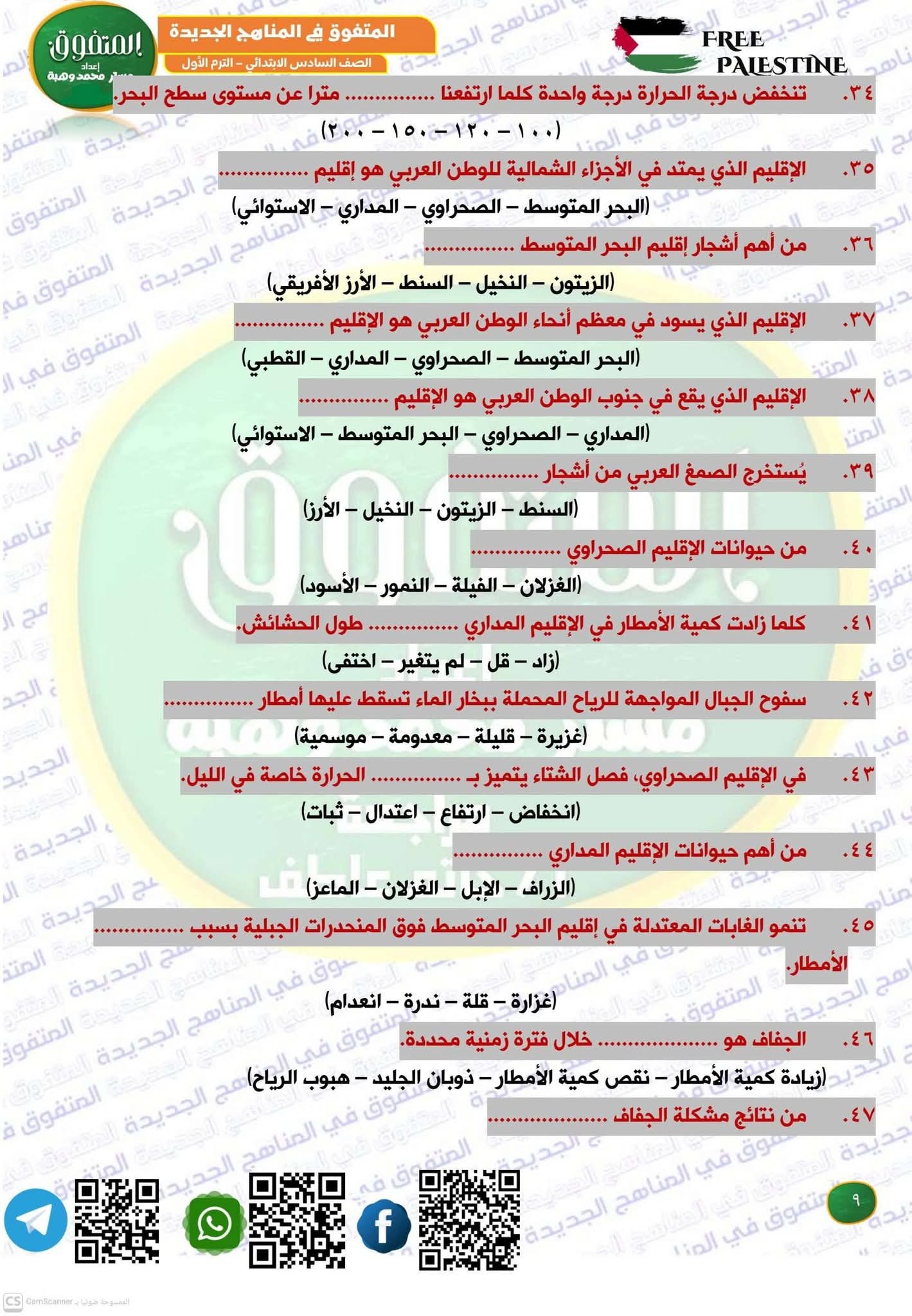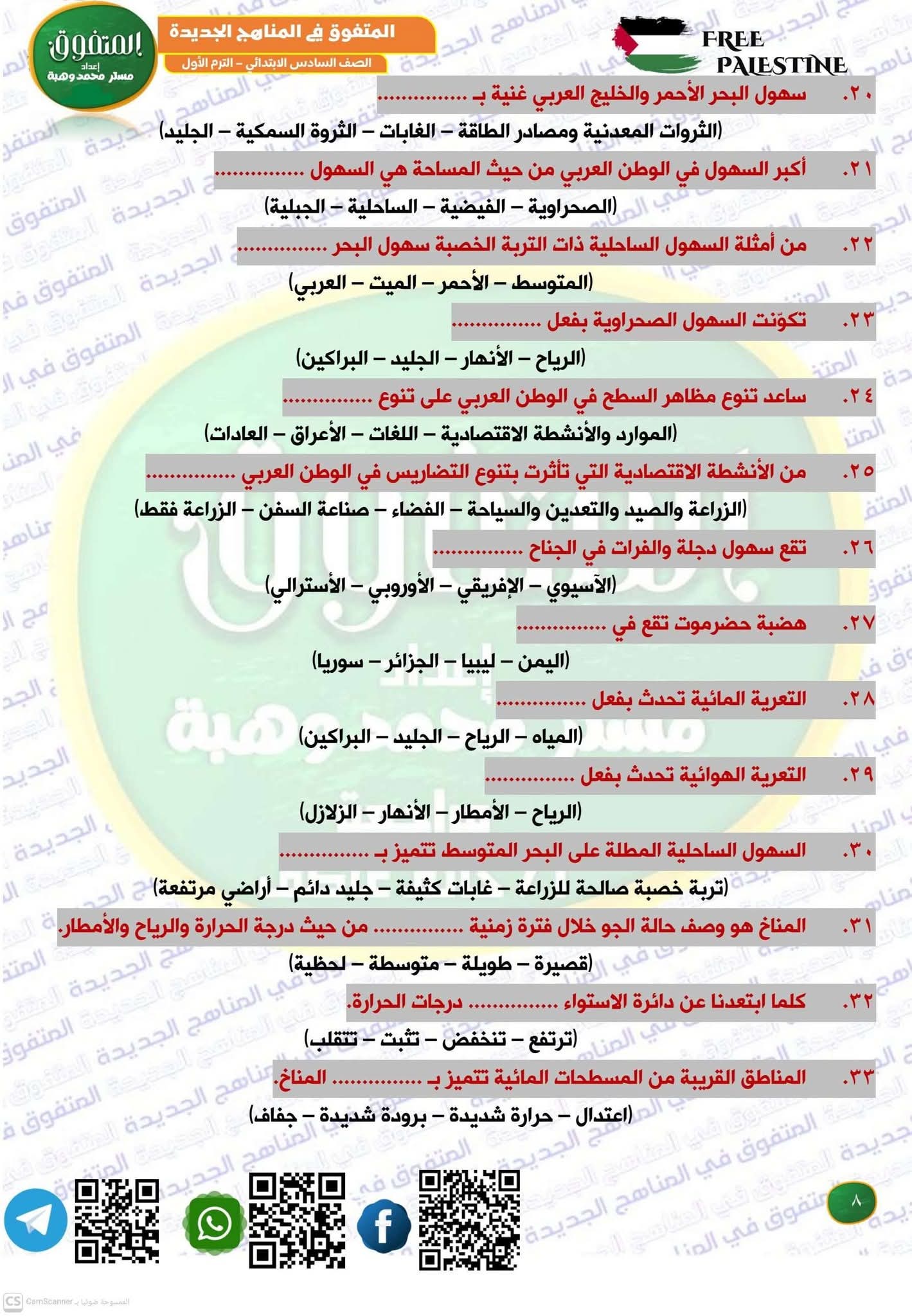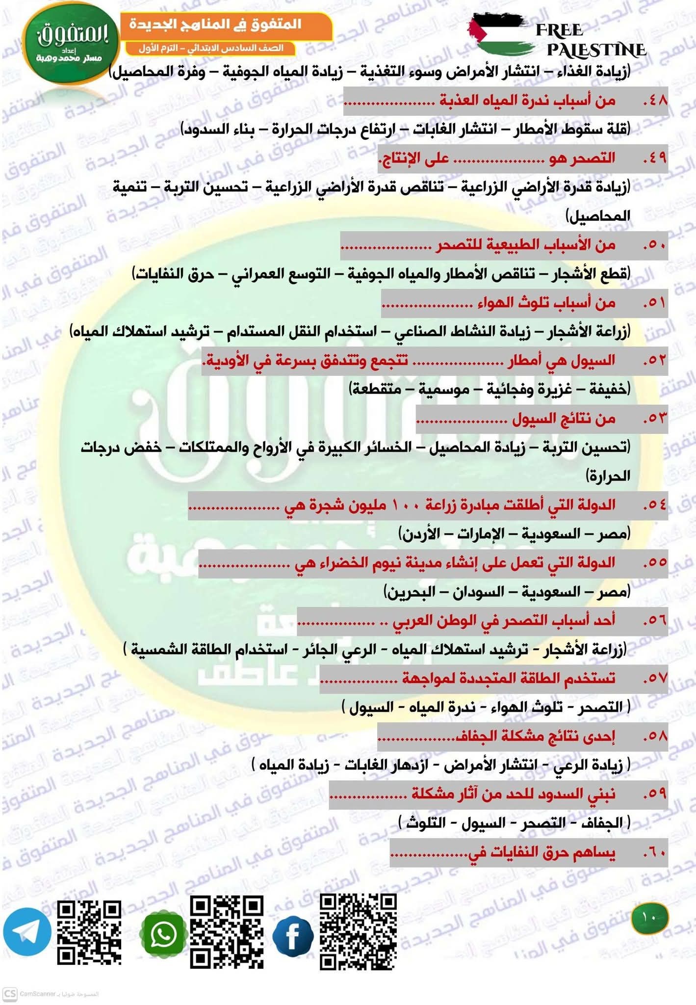 مراجعة جغرافيا الصف الثاني الثانوي، أهم الأسئلة في المراجعة النهائية