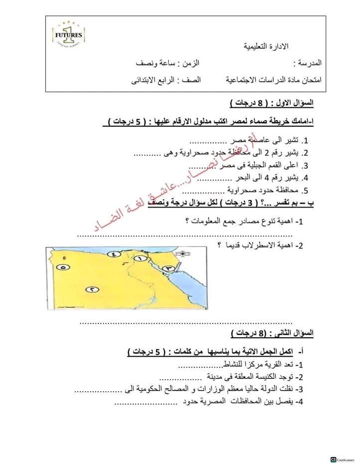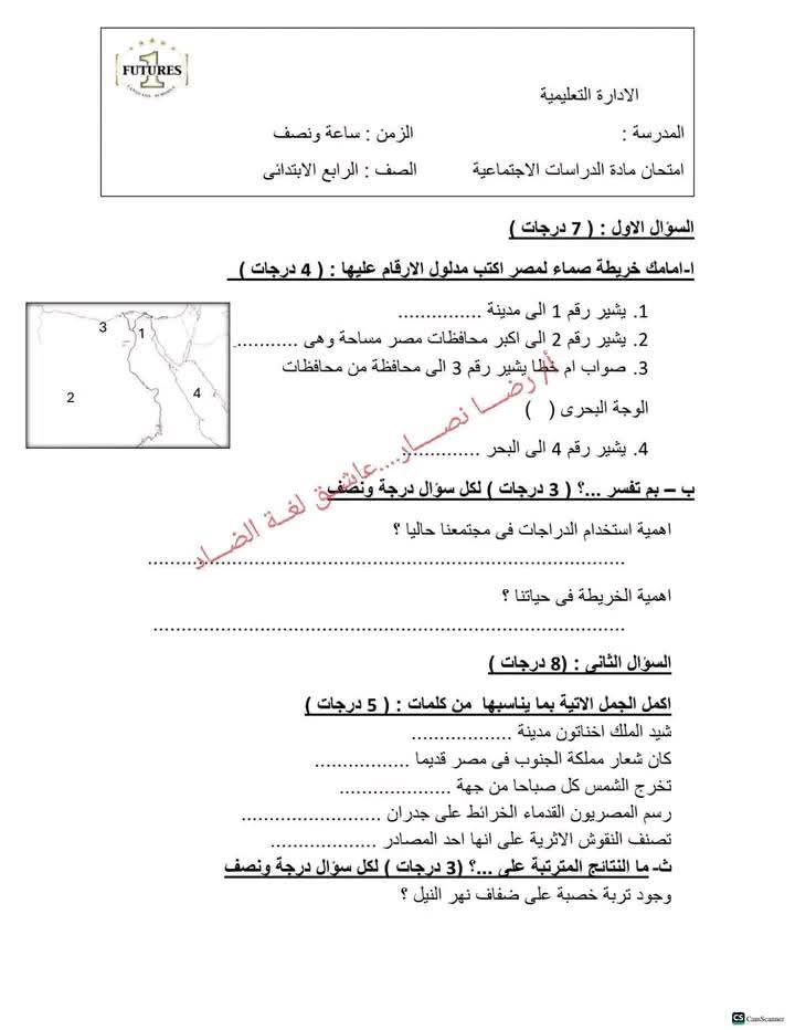نماذج امتحانات دراسات للصف الرابع الابتدائي النظام الجديد