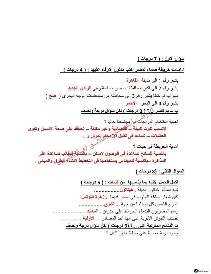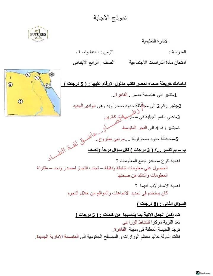 ويستطيع طلاب الصف الرابع الابتدائي الاستفادة من أسئلة النماذج الامتحانية من خلال الأسئلة التالية: