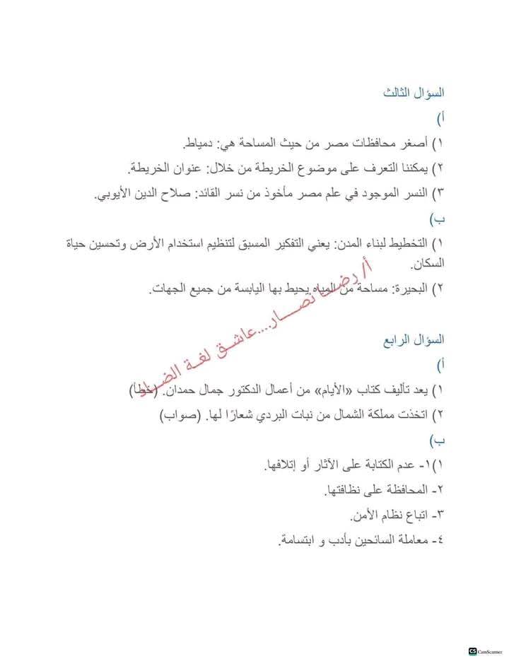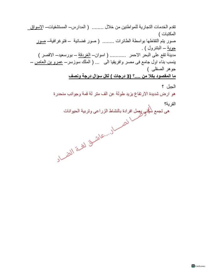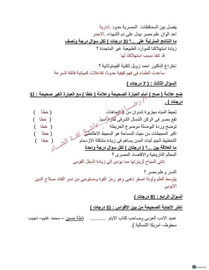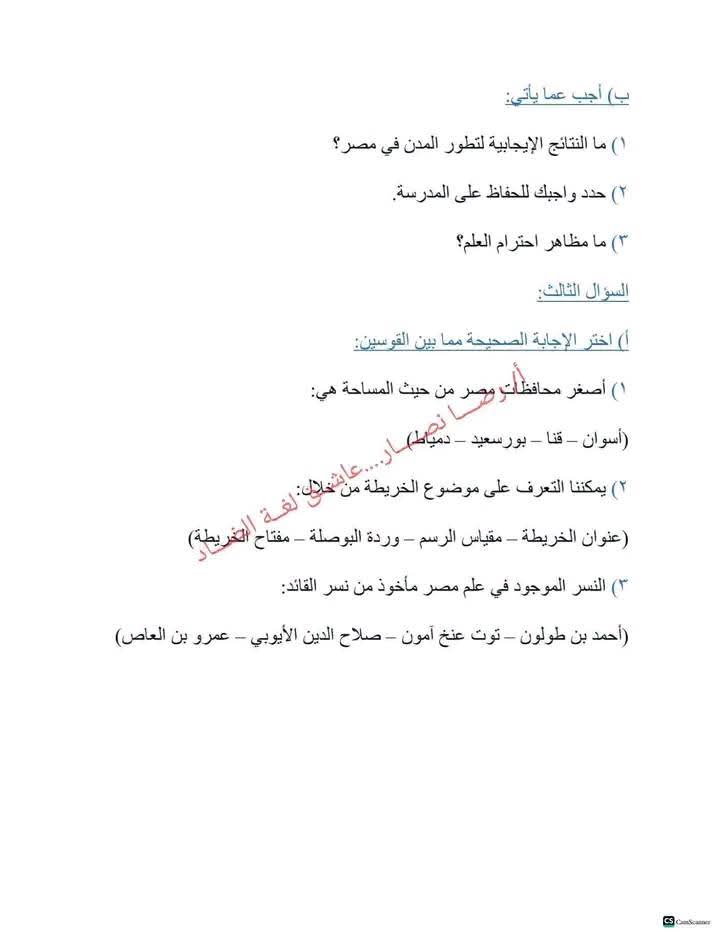 مراجعة عربي الصف الثالث الابتدائي، أهم الأسئلة