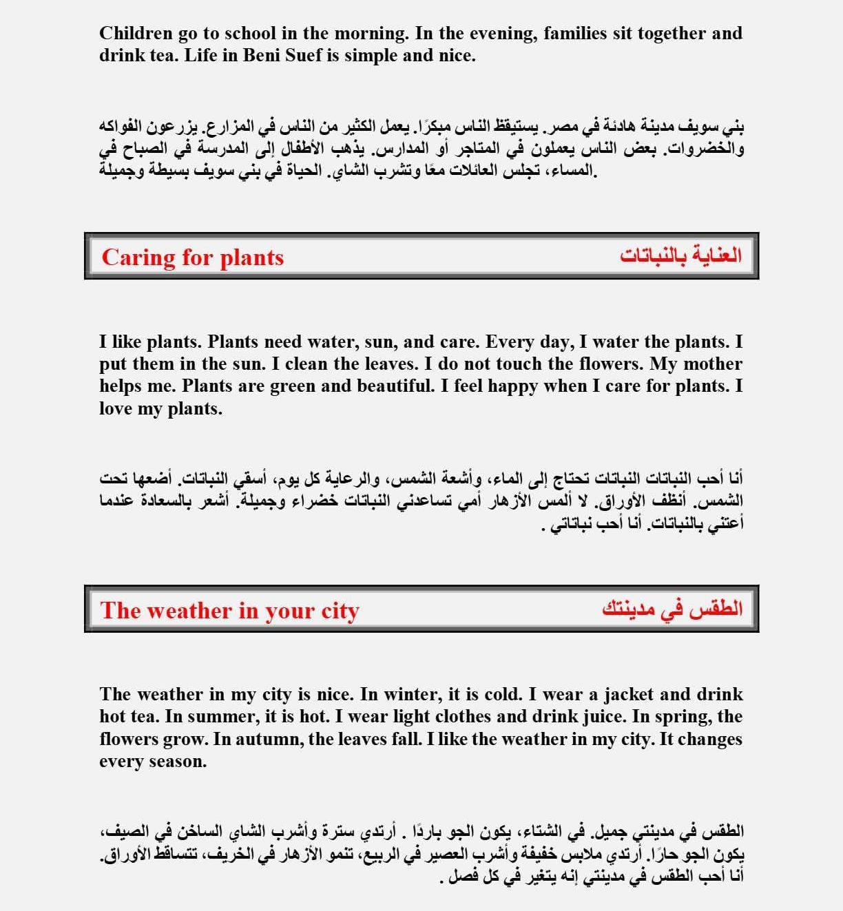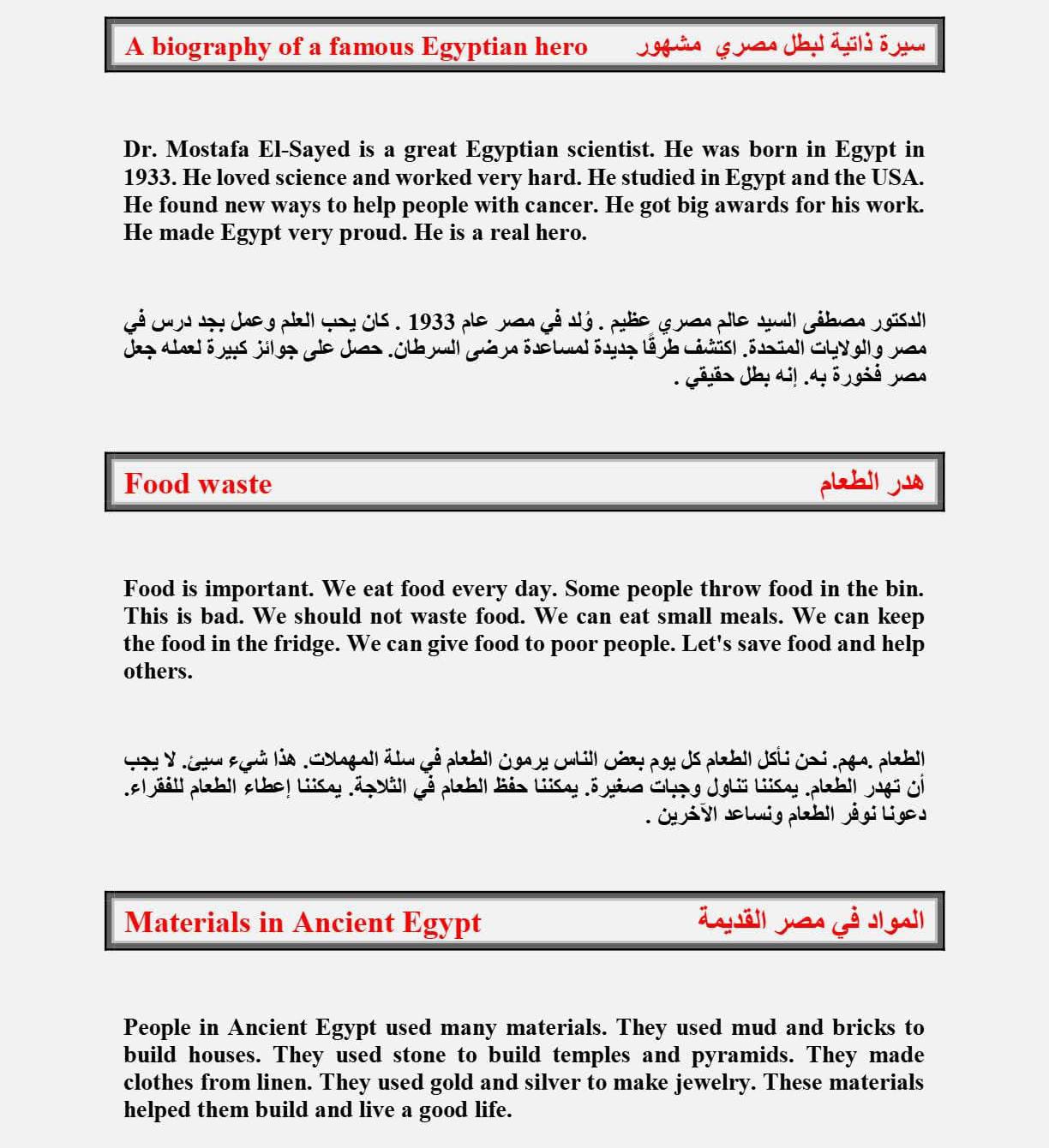 يستطيع طلاب الصف السادس الابتدائي حفظ البراجرافات التالية في مادة اللغة الإنجليزية لتعزيز مستواهم والحصول على أعلى الدرجات: