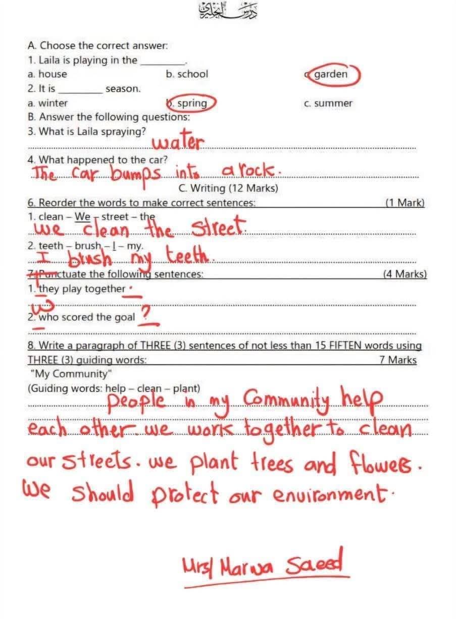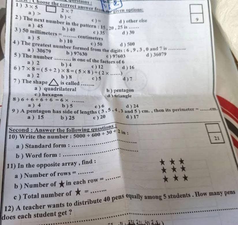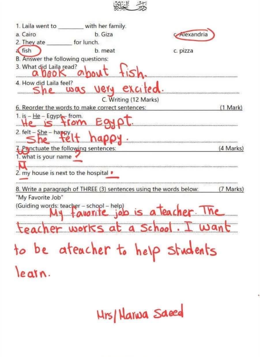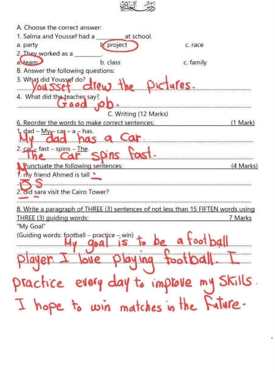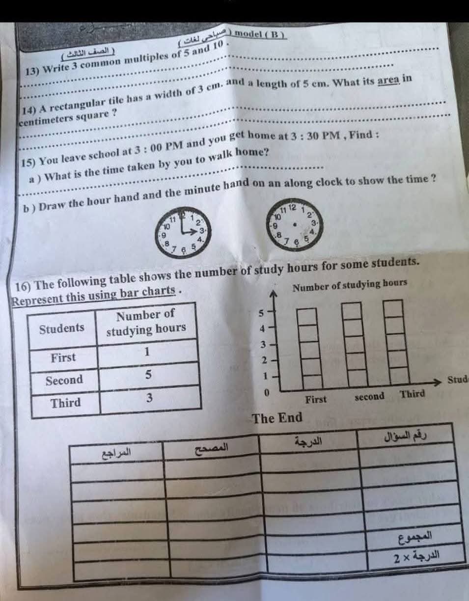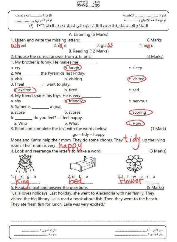 نماذج امتحانات انجليزي الصف الثالث الابتدائي