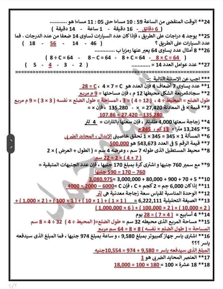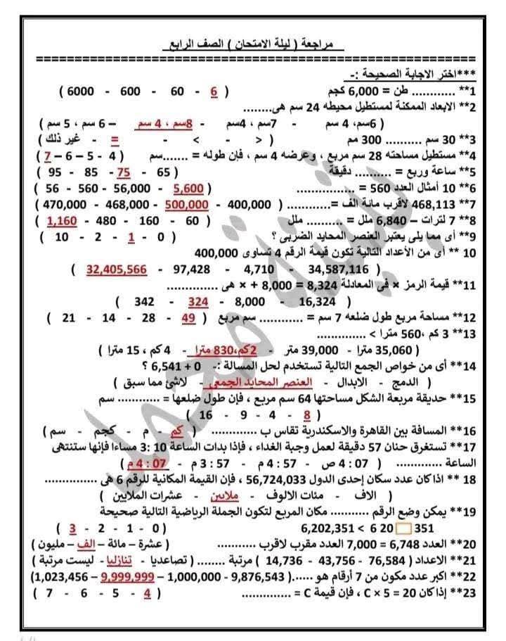 براجرافات الصف الرابع الابتدائي الترم الأول 2026 للطلاب قبل الامتحان