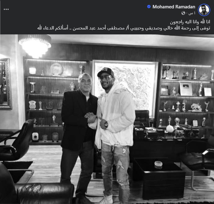 ونشر رمضان عبر صفحته الرسمية على "فيسبوك"، صورة له مع خاله من داخل مكتبه، وعلق عليها قائلًا: "إنا لله وإنا إليه راجعون، توفى إلى رحمة الله خالي وصديقي وحبيبي مصطفى أحمد عبدالمحسن.. أسألكم الدعاء لله".