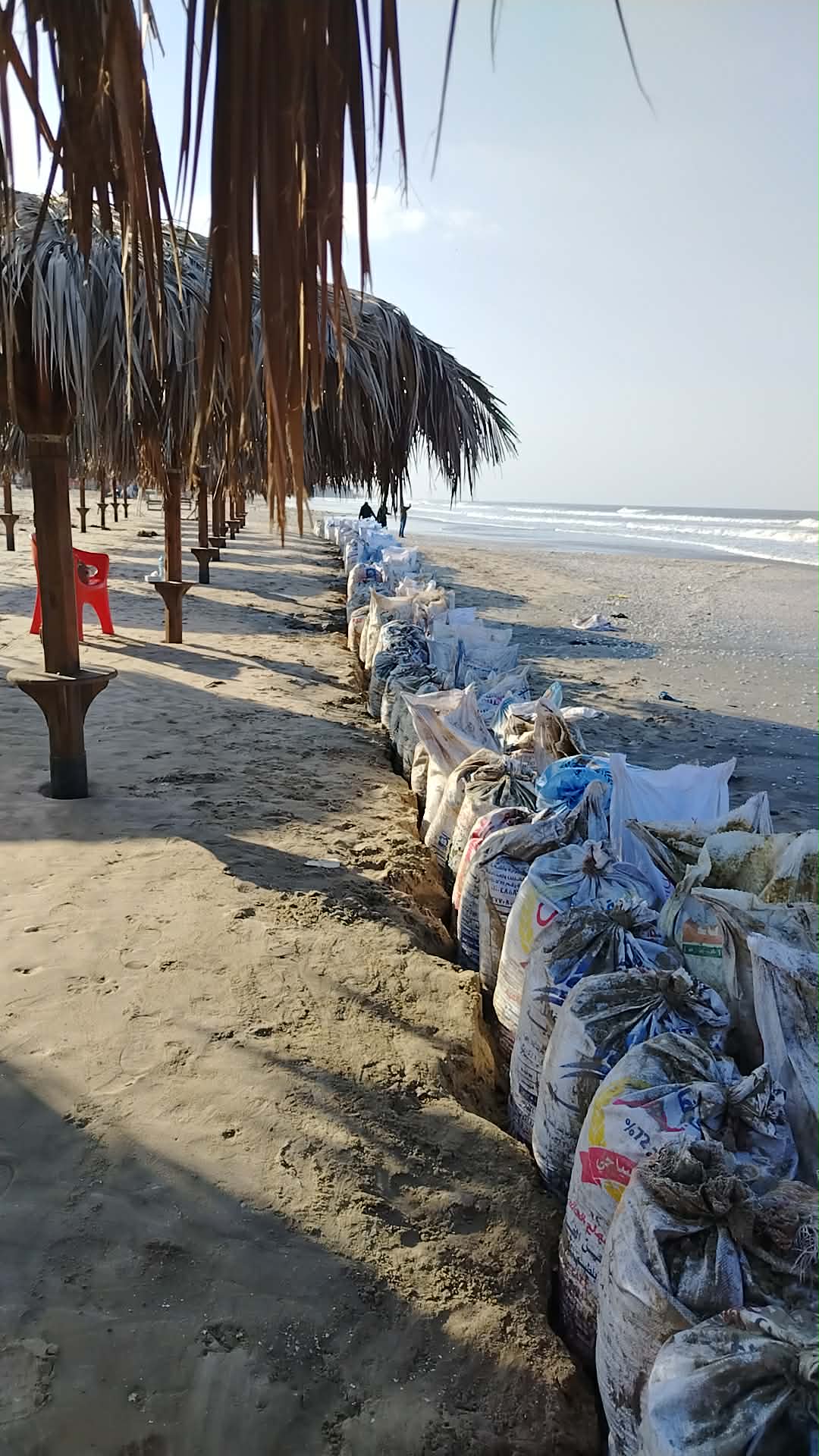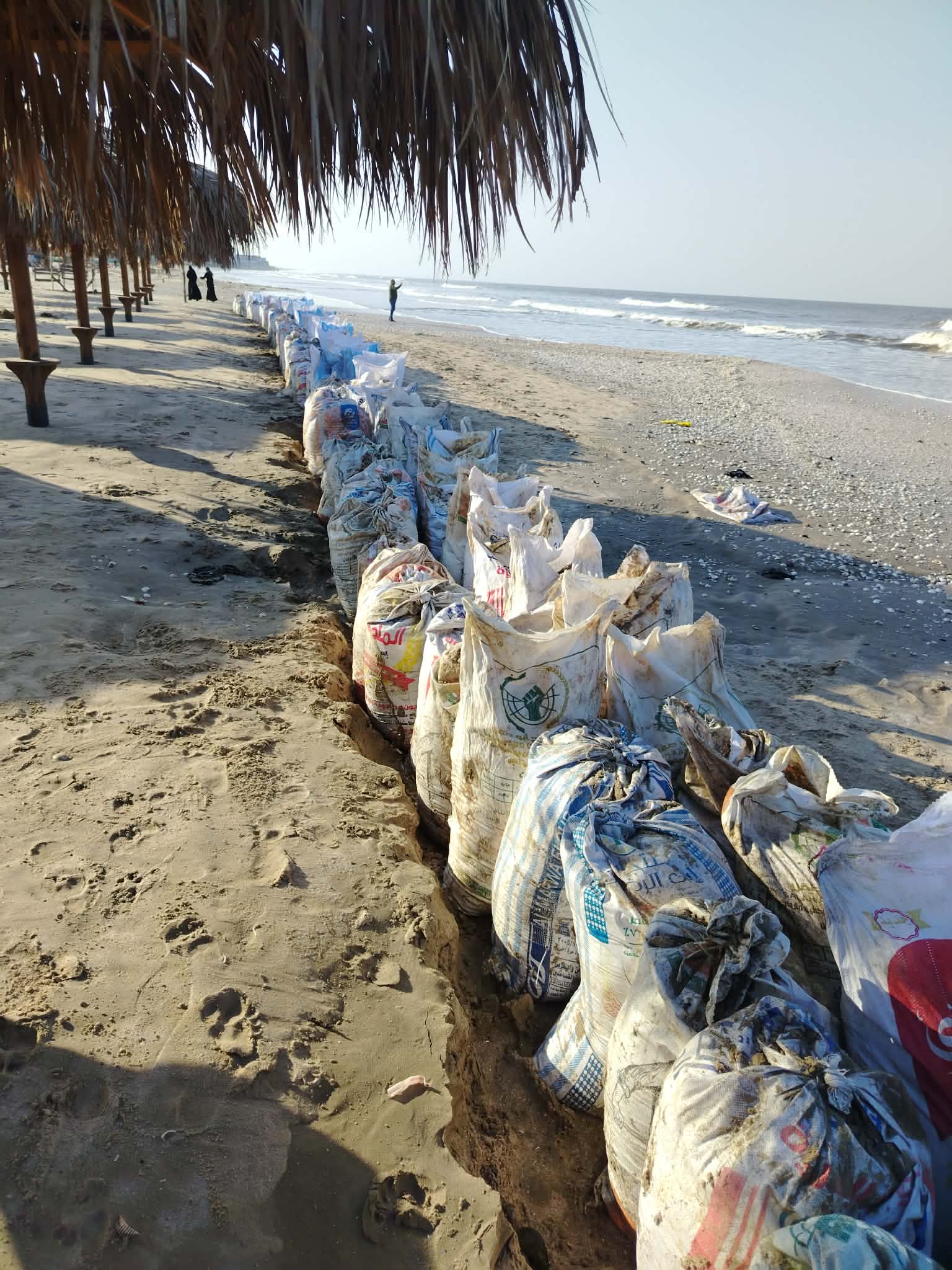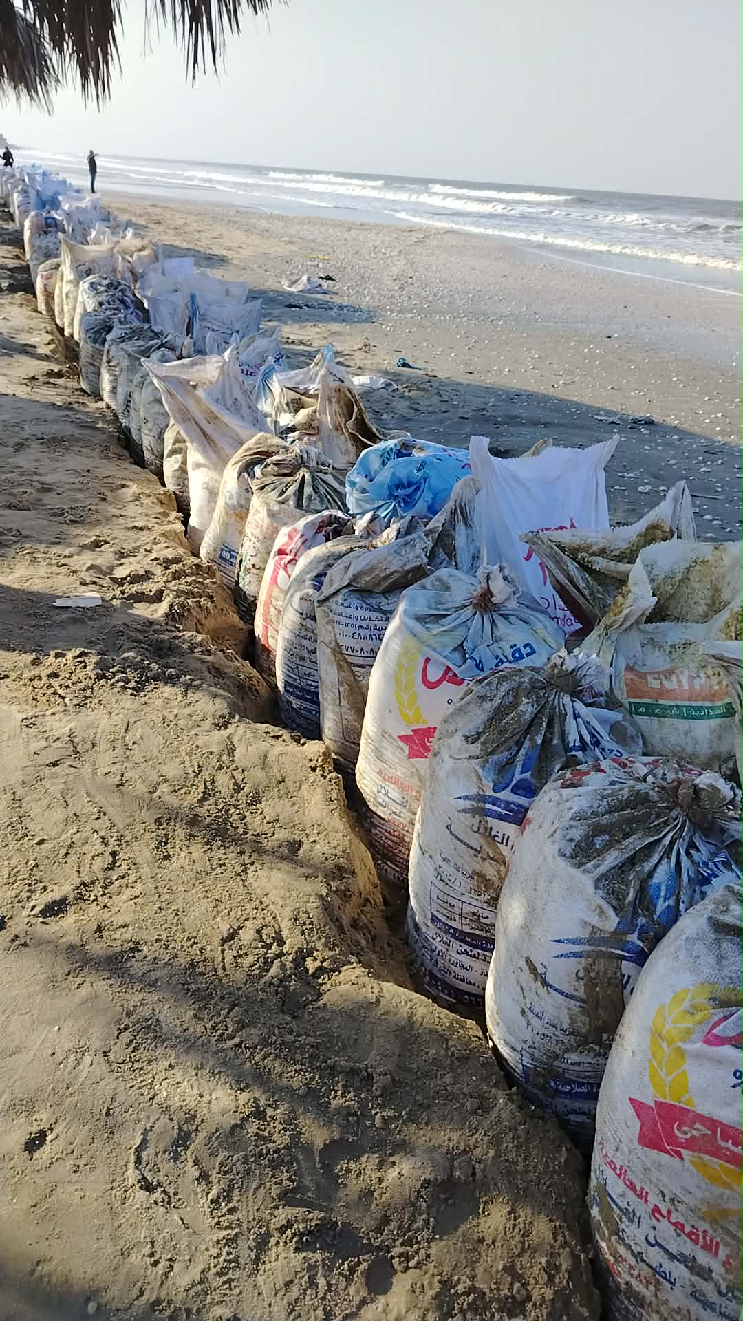 أجولة الرمل تتحول لحاجز أمواج