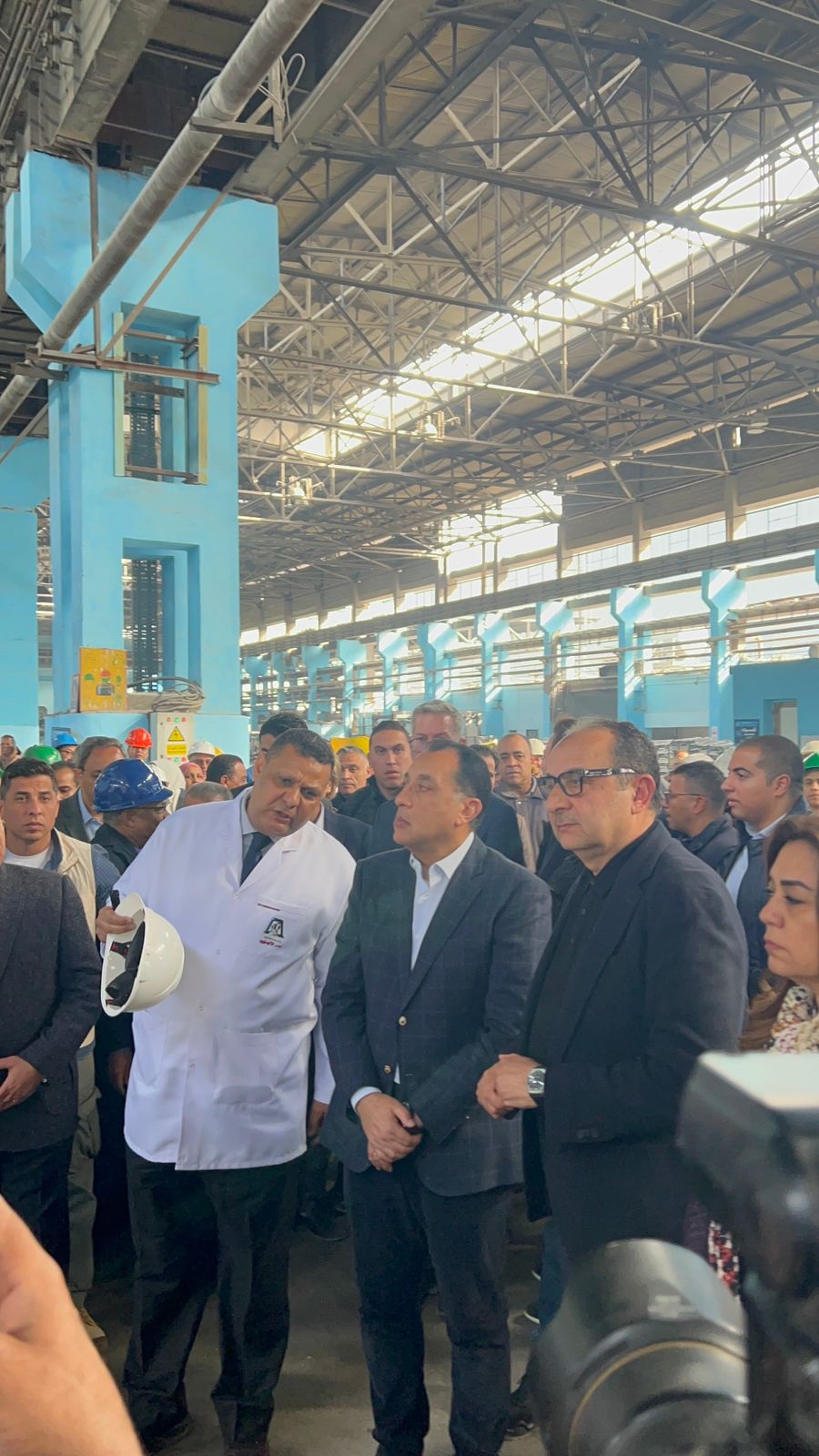 وشملت الجولة وزراء النقل والكهرباء والطاقة المتجددة والتعاون الدولي والبترول والثروة المعدنية، حيث استمع رئيس الوزراء والوفد المرافق له إلى شرح تفصيلي حول مراحل الإنتاج داخل المصنع، والطاقة التشغيلية، وخطط التطوير والتحديث الجارية لرفع كفاءة التشغيل وزيادة الطاقة الإنتاجية.