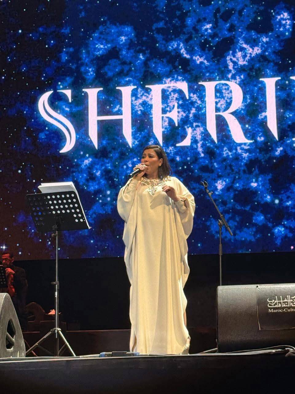 ظهرت شيرين بقفطان مغربي فضفاض، لا يوجد به أي تطريز، وشعر انسيابي ومكياج بسيط جدًا، وغنت لأم كلثوم ألف ليلة وليلة، ولكن الجمهور لاحظ عليها عند غنائها هذه الأغنية تحديدًا التعب والإرهاق، بل والصوت الضعيف، ومن حين لآخر كانت تطلب استراحة، قائلة: “لحظة ورجعالكم”، كما كانت تضحك وتبكي في نفس اللحظة التي كانت تغني فيها “كدة يا قلبي”.