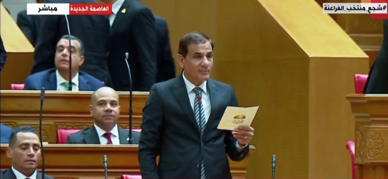 ويتلى في الجلسة قرار رئيس الجمهورية بدعوة المجلس للانعقاد، ويؤدي الأعضاء اليمين الدستورية الآتية: "أقسم بالله العظيم أن أحافظ مخلصًا على النظام الجمهوري، وأن أحترم الدستور والقانون، وأن أرعى مصالح الشعب رعايةً كاملة، وأن أحافظ على استقلال الوطن ووحدة وسلامة أراضيه".