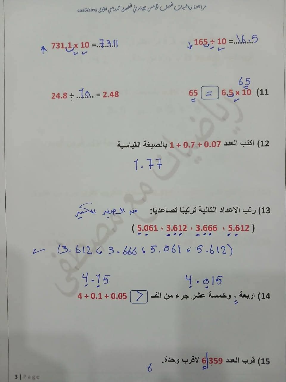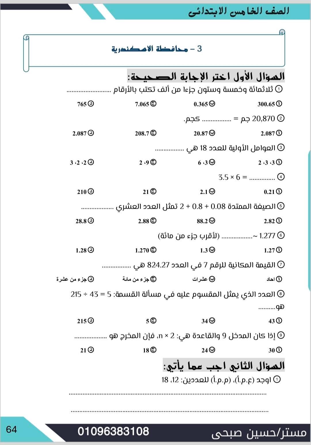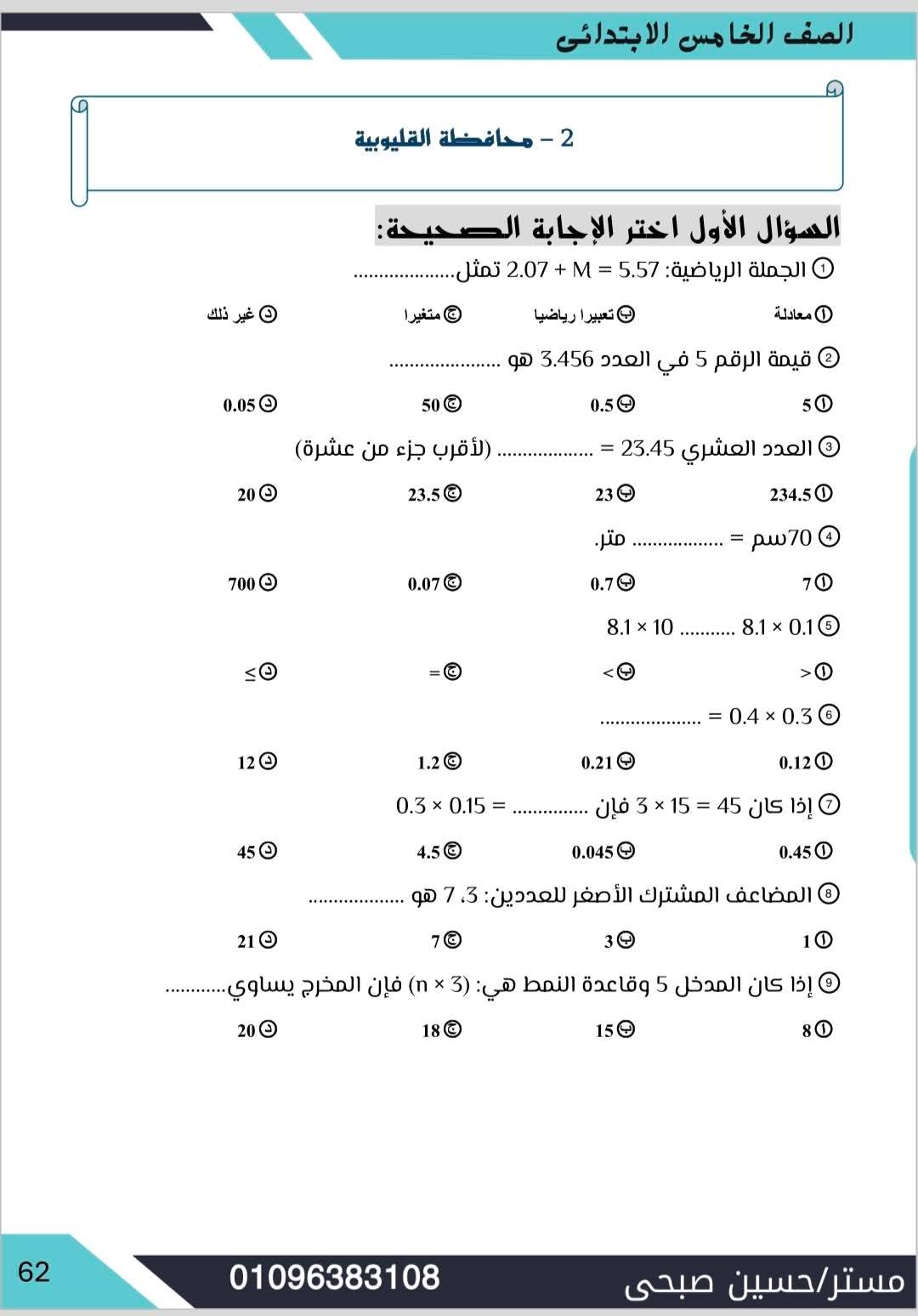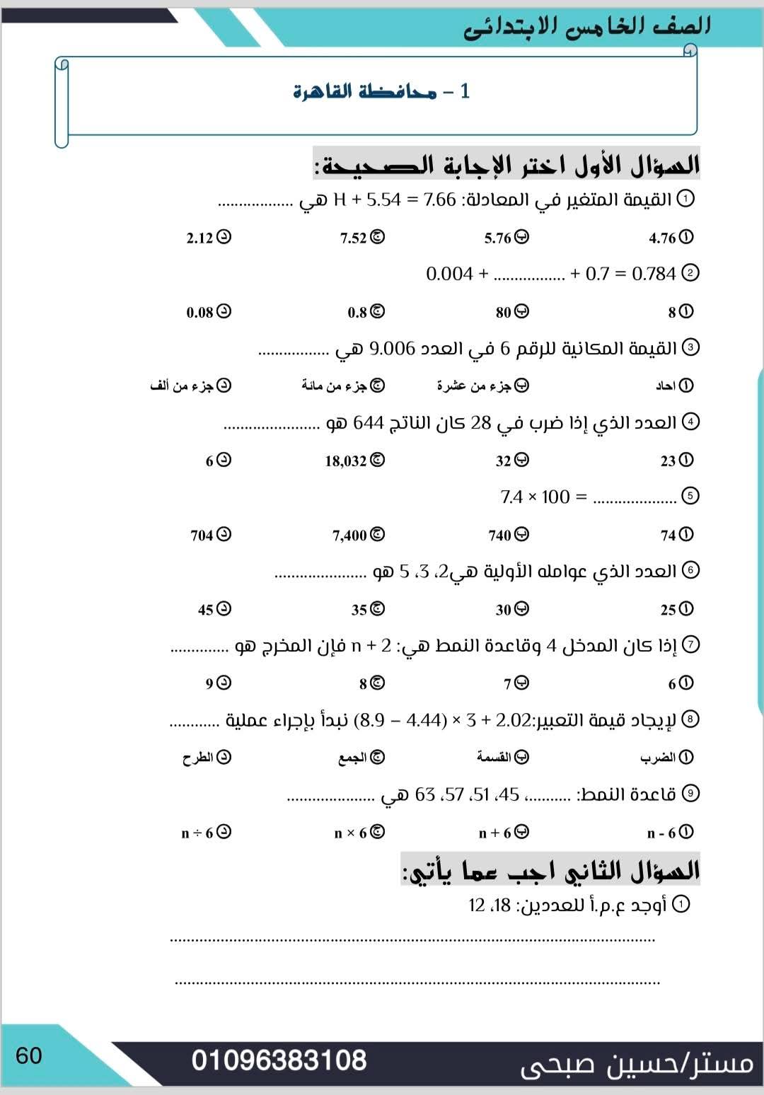 مراجعة مادة الرياضيات الصف الخامس الابتدائي