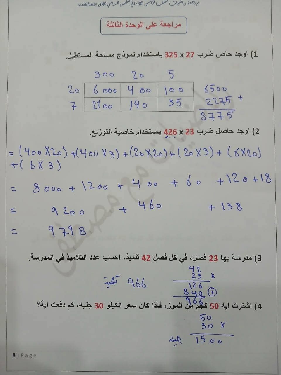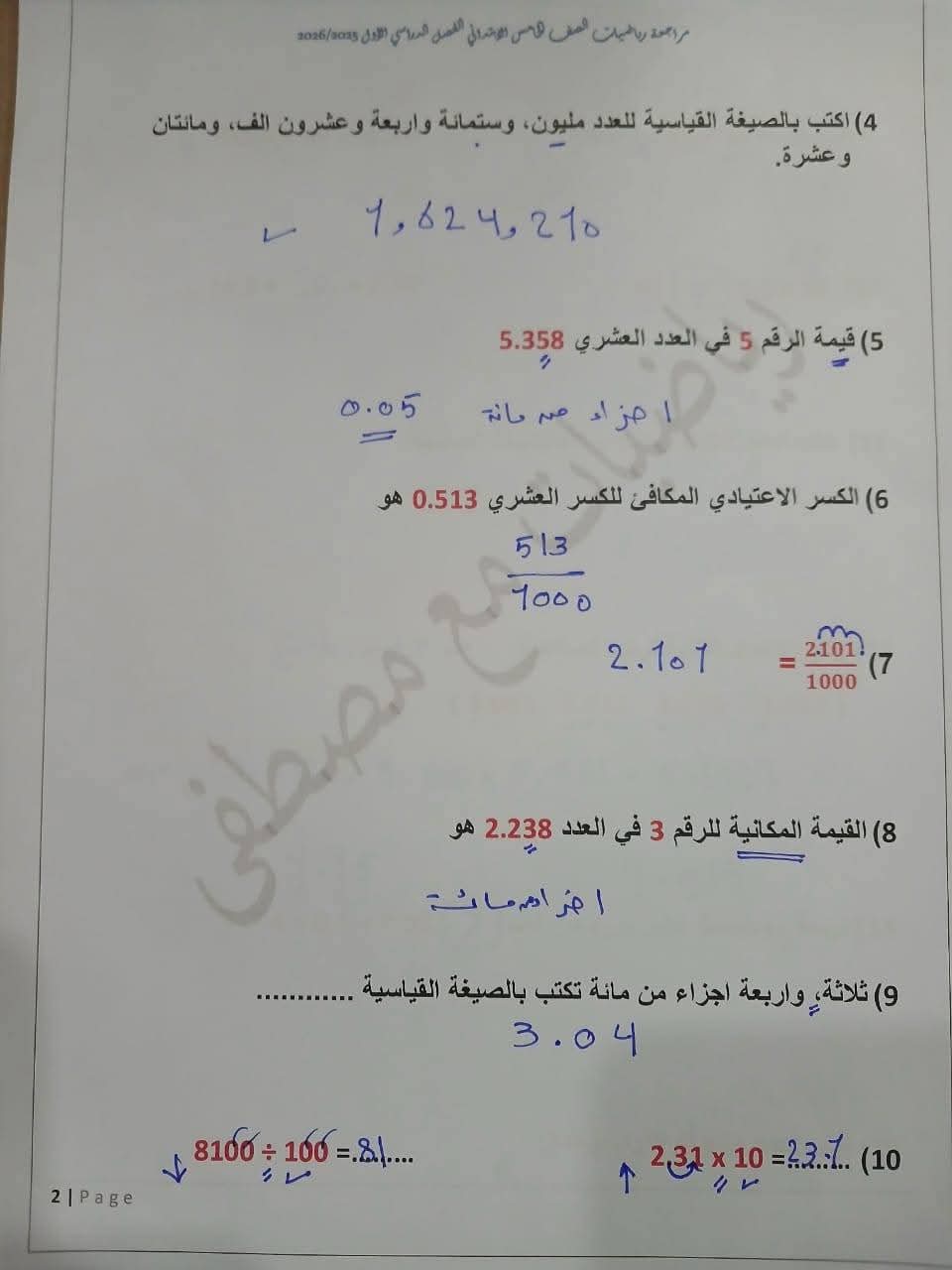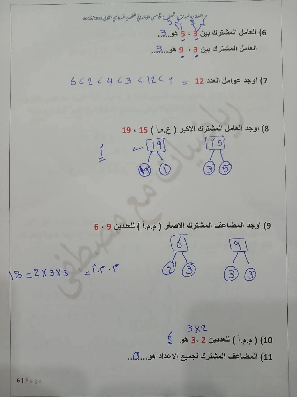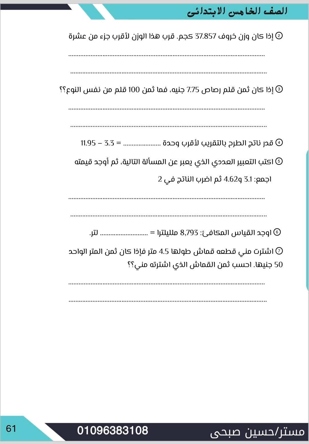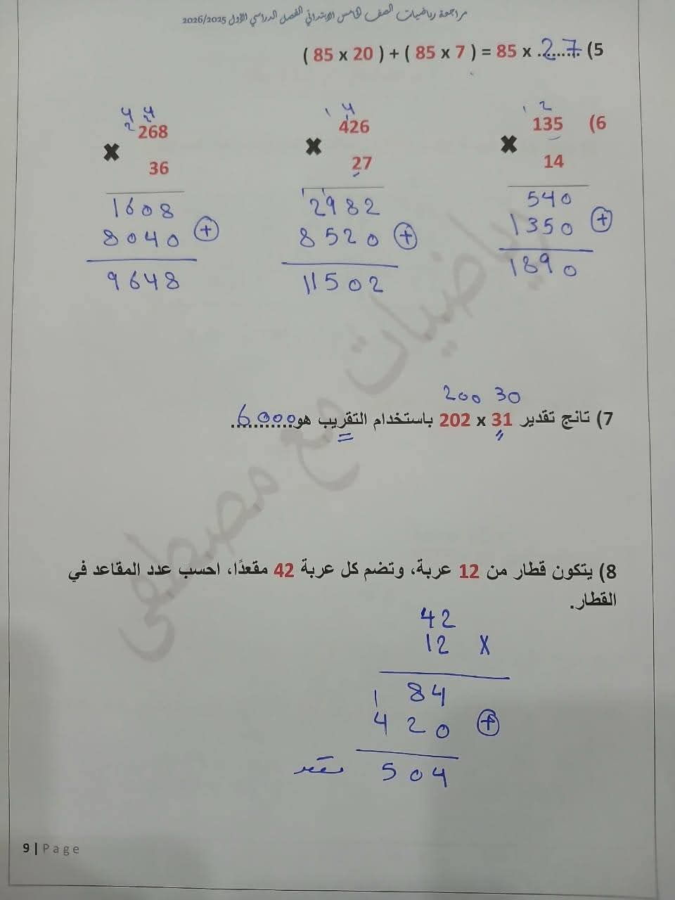 مراجعة مادة الرياضيات الصف الخامس الابتدائي