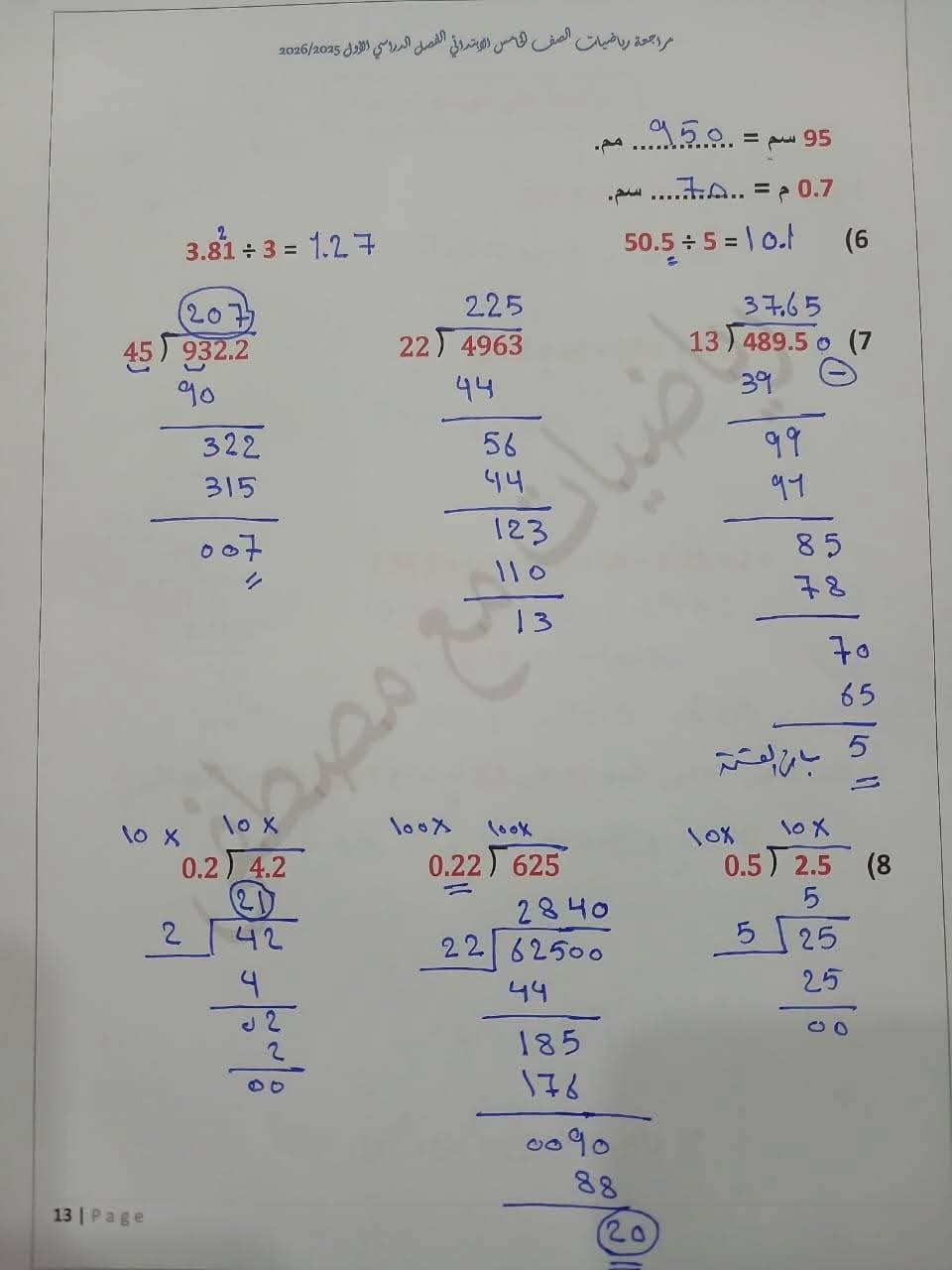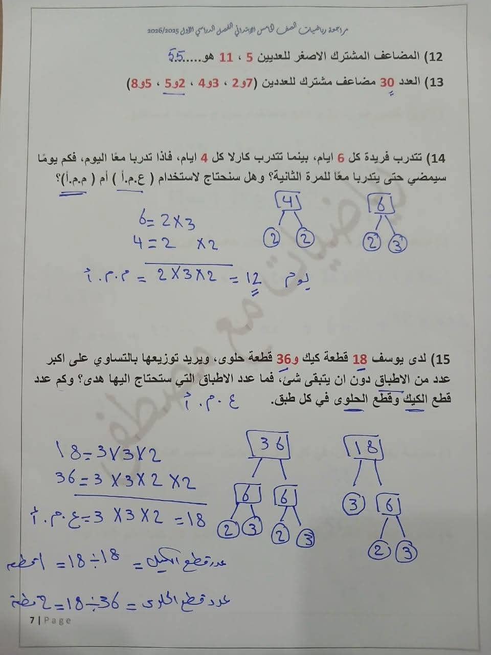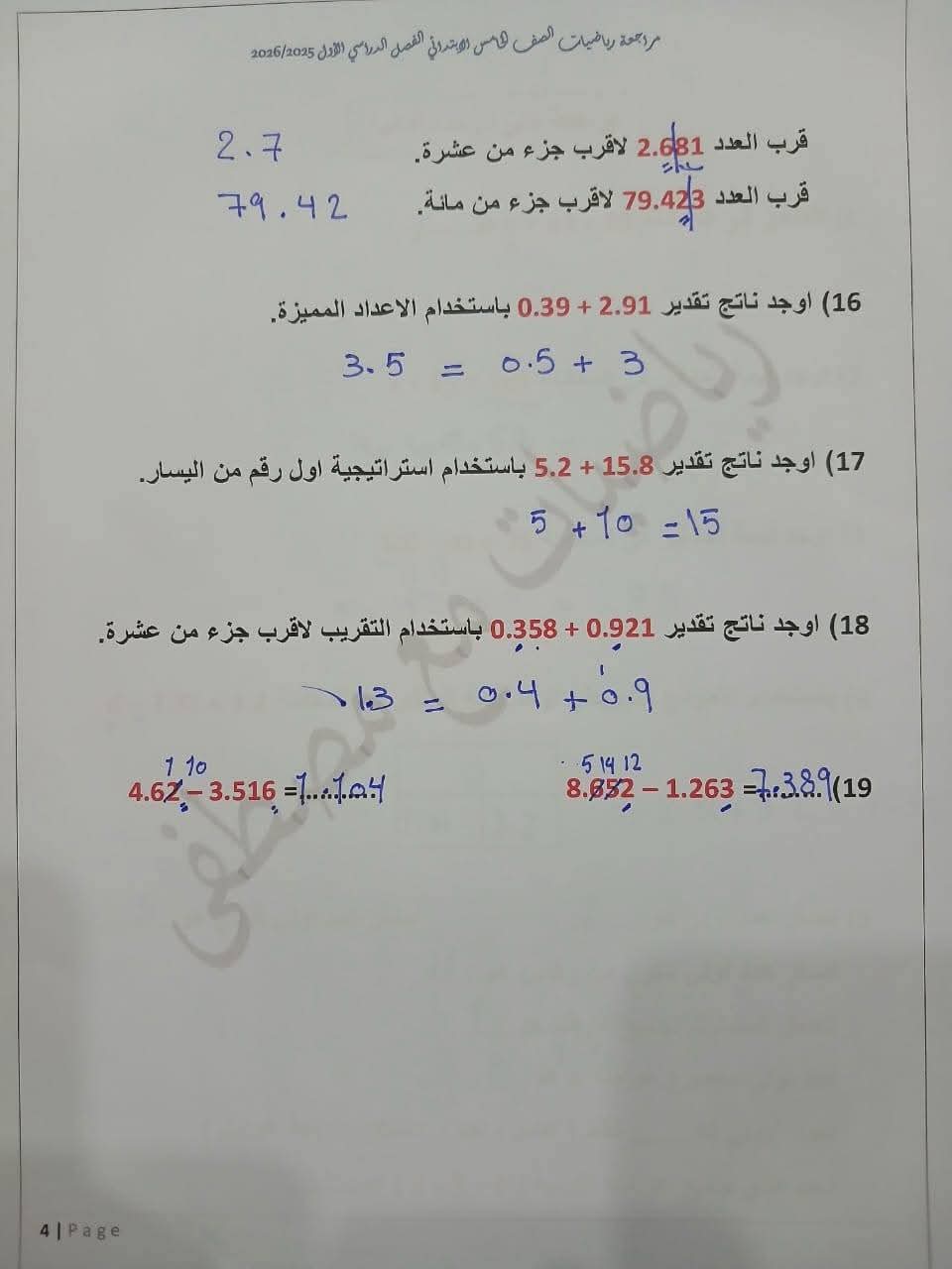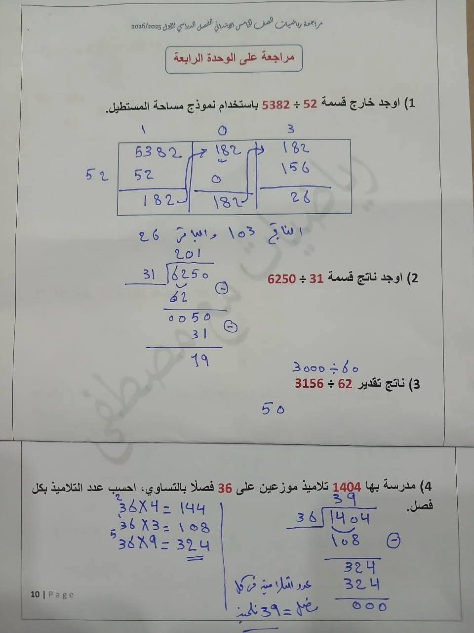 مراجعة مادة الرياضيات الصف الخامس الابتدائي