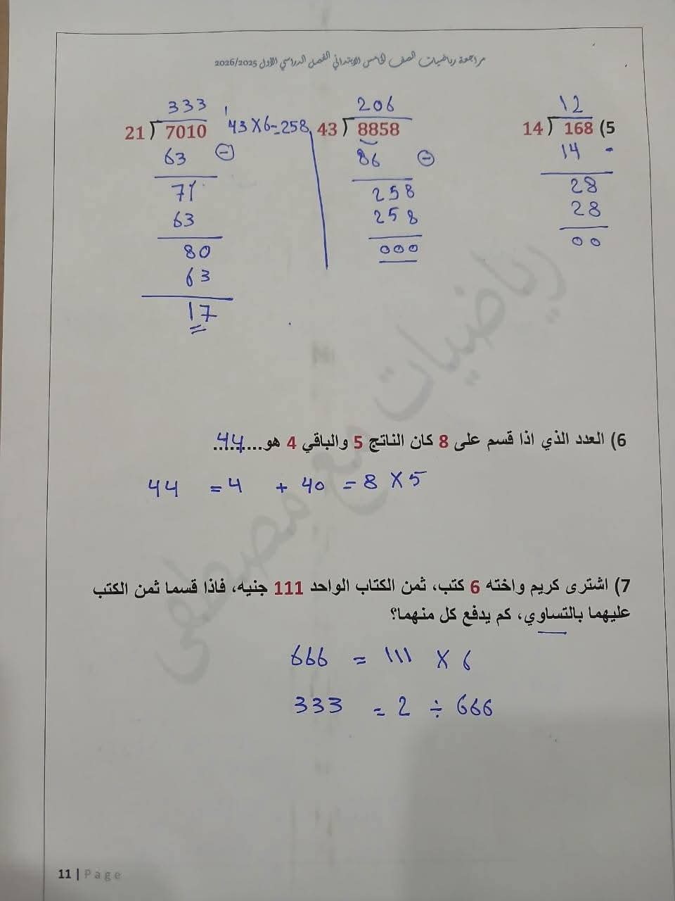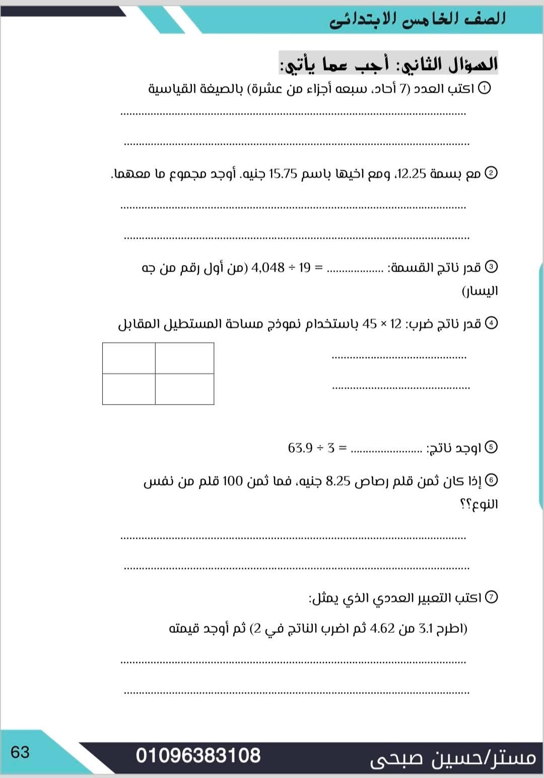 مراجعة رياضيات الصف الخامس الابتدائي الترم الأول، أهم نماذج الامتحانات
