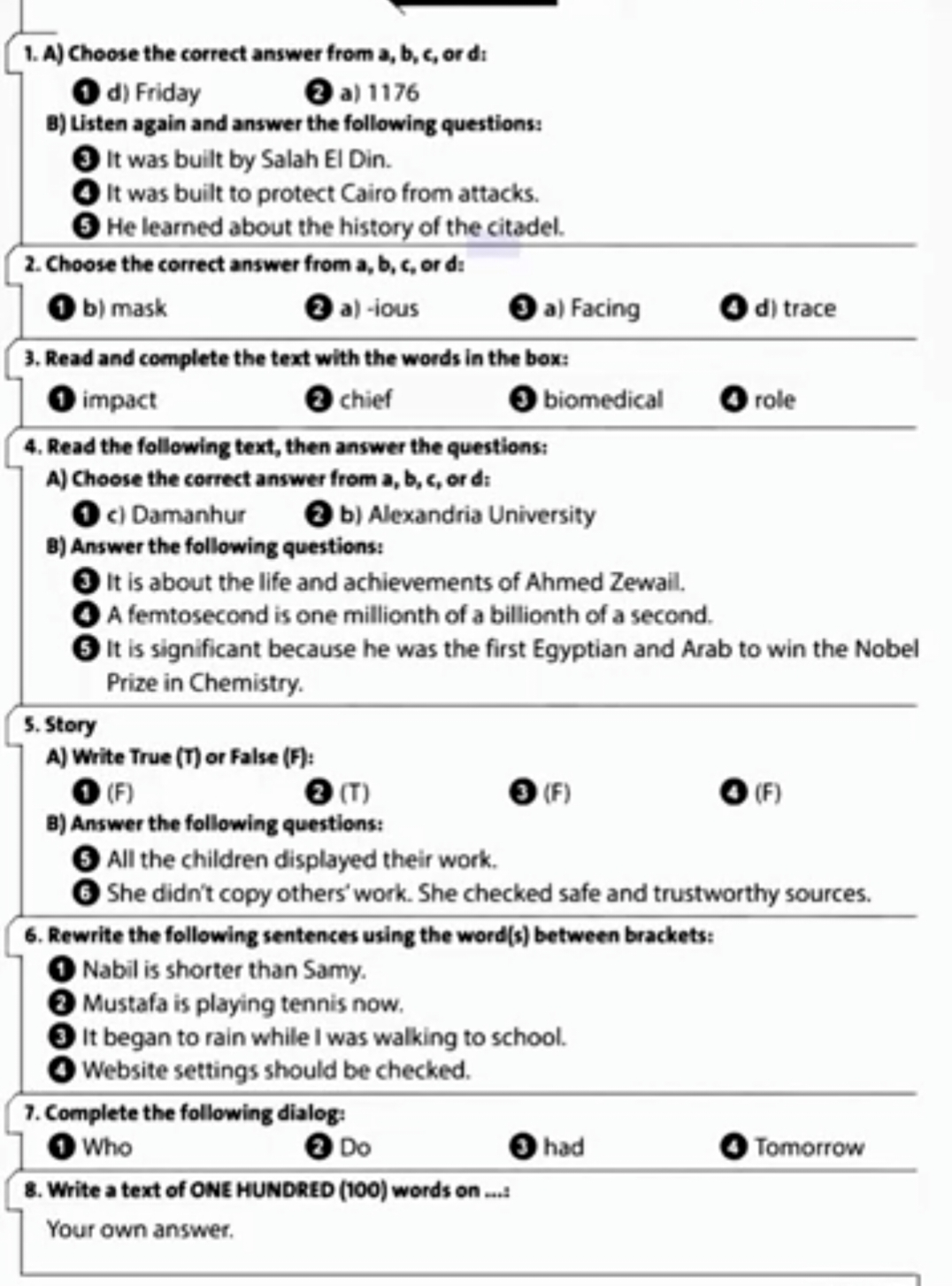 إجابة نماذج امتحانات انجليزي للصف الثاني الإعدادي