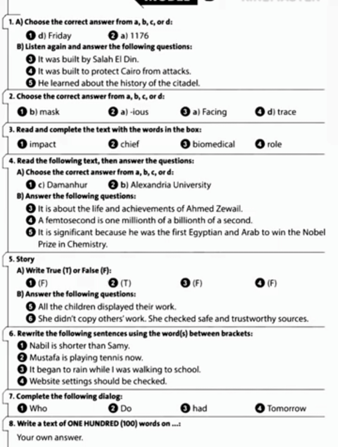 نماذج امتحانات انجليزي للصف الثاني الإعدادي مجاب عنها 2026
