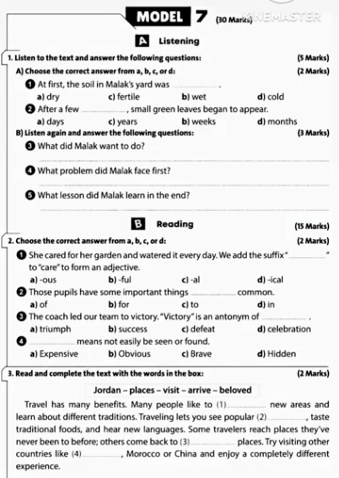نماذج امتحانات انجليزي للصف الثاني الإعدادي
