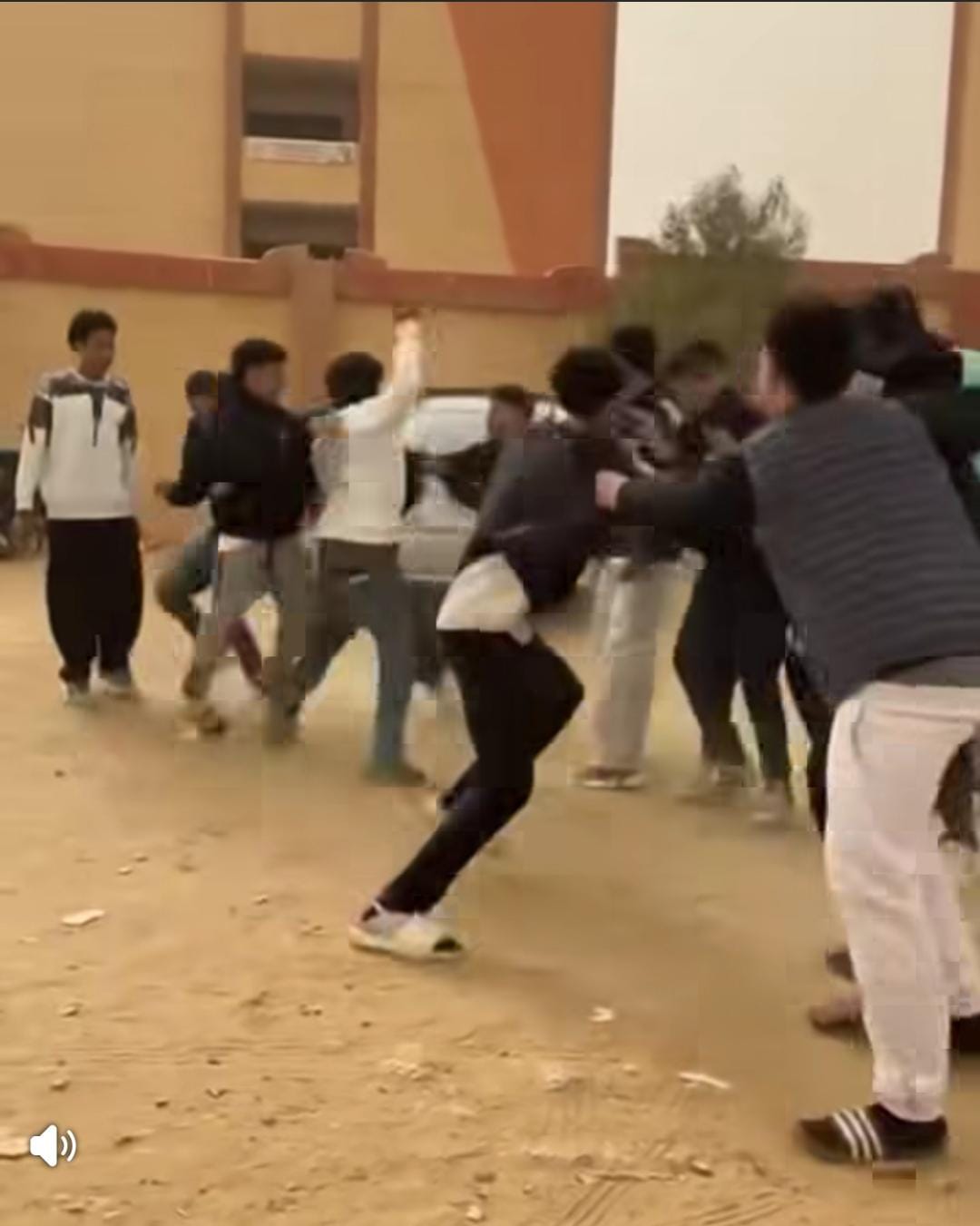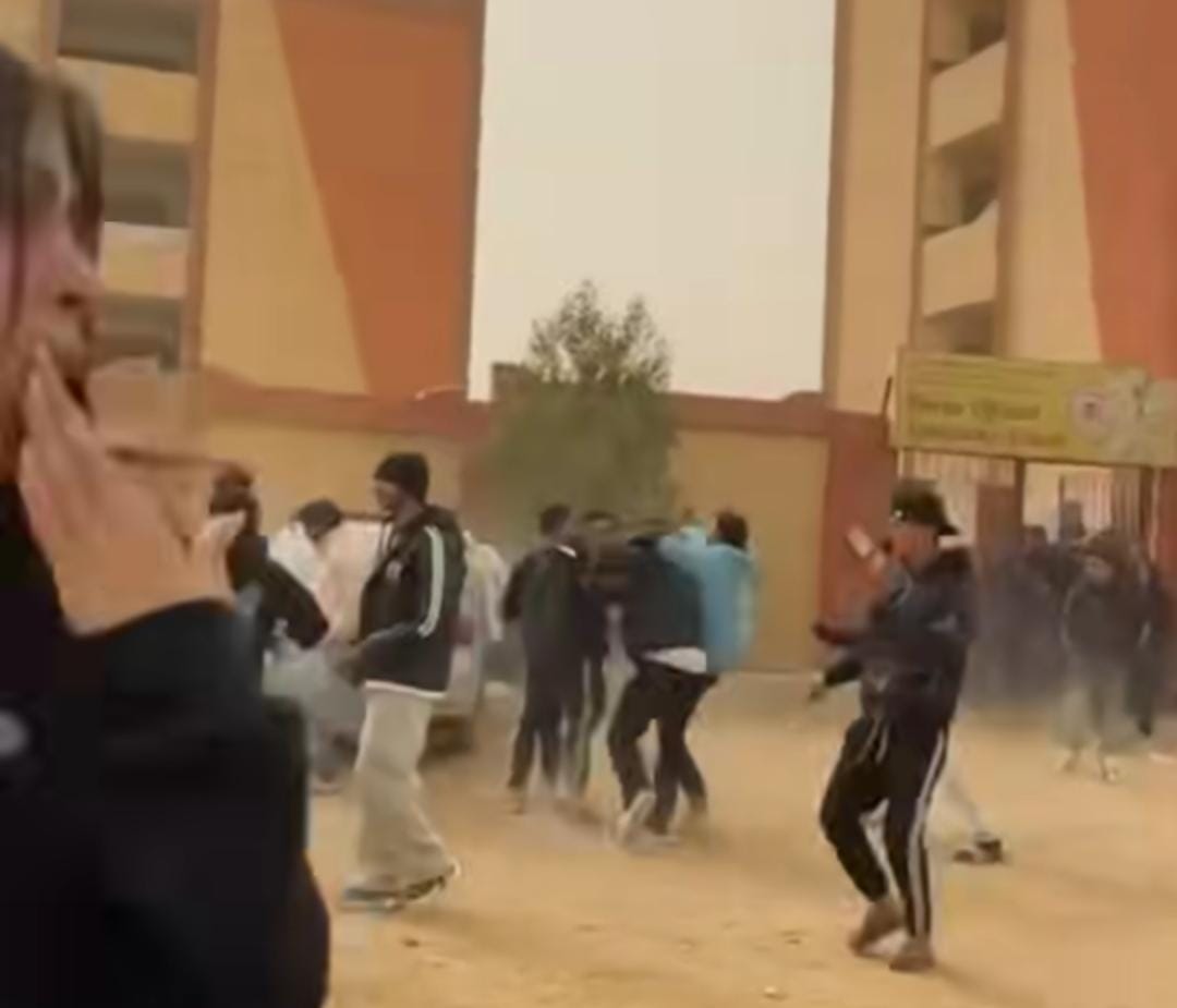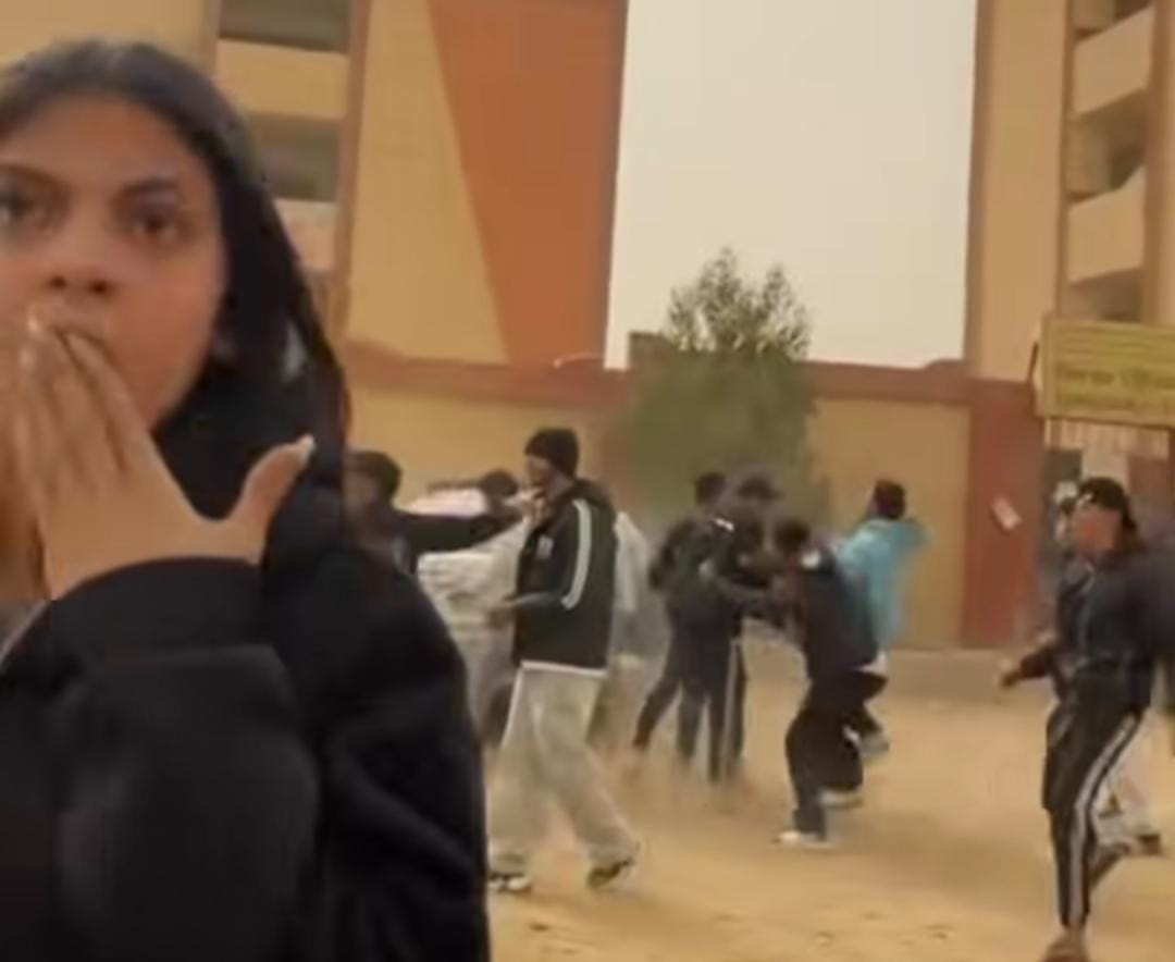 وظهر في الفيديو عدد كبير من الطلاب وهم يتشاجرون، فيما استخدم بعضهم أدوات حادة وتبادلوا الاعتداء على بعضهم البعض، وسط تجمع عدد من زملائهم في محيط الواقعة.