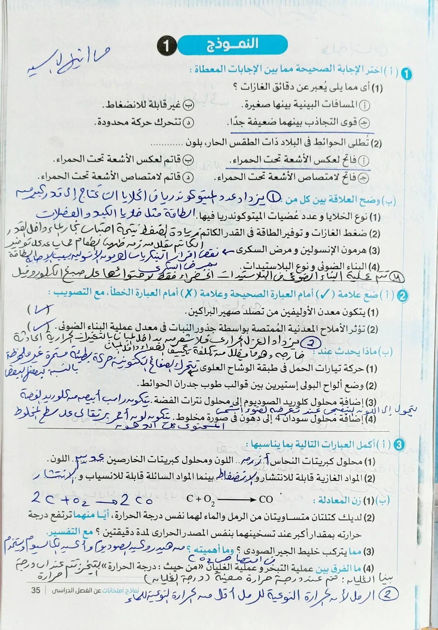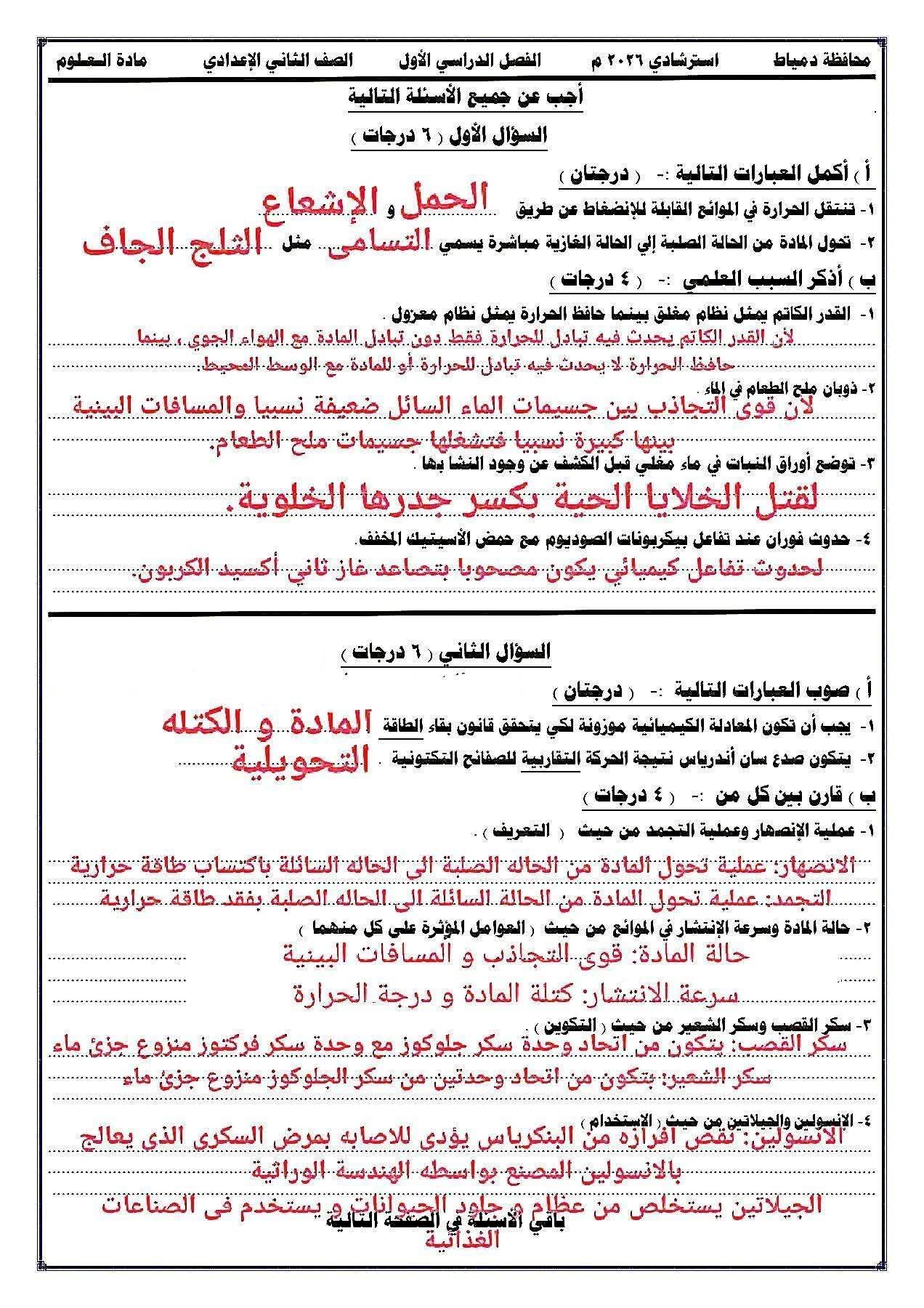 النماذج الاسترشادية للصف الثاني الإعدادي 2026 علوم، أهم الأسئلة