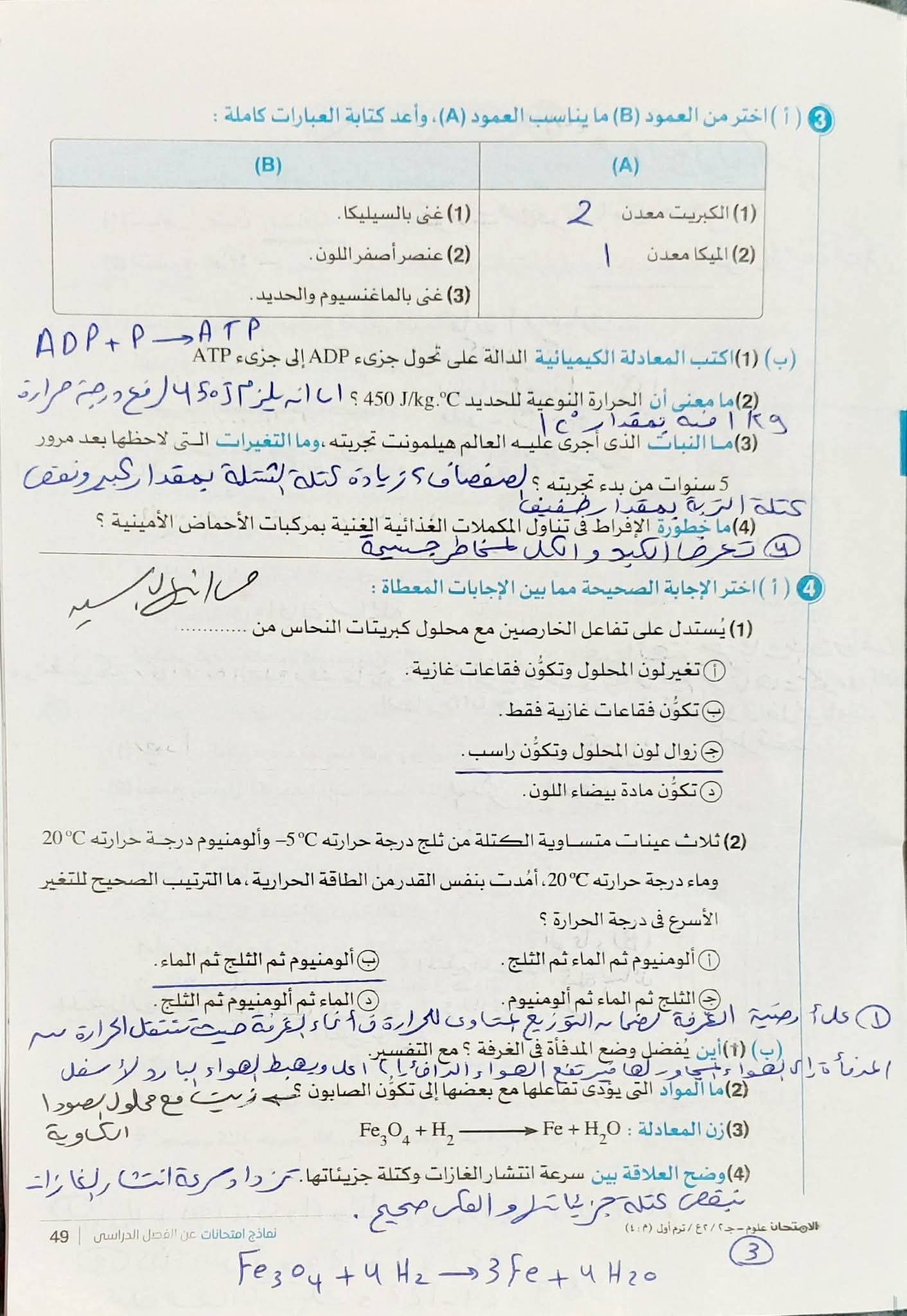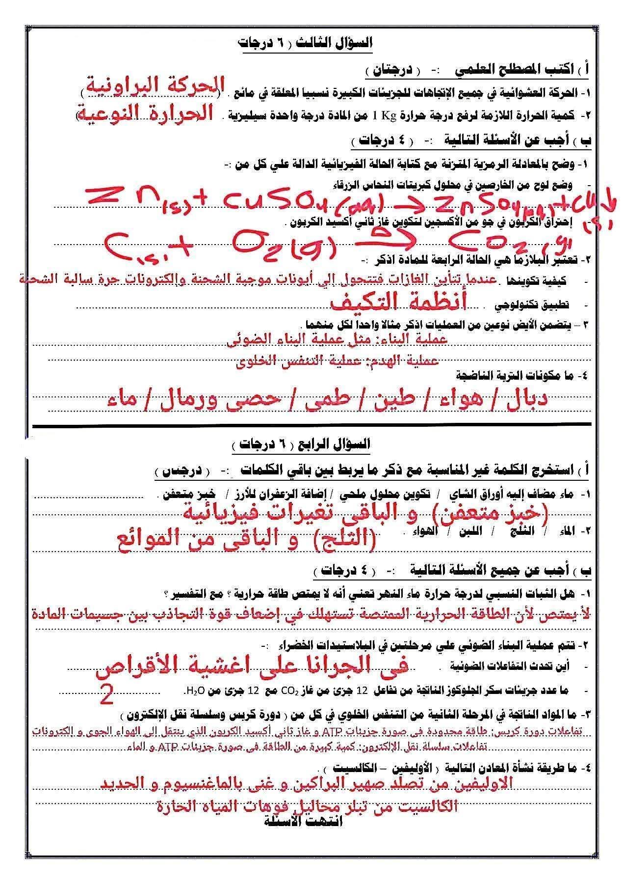 ويستطيع طلاب الصف الثاني الإعدادي مراجعة مادة العلوم من خلال النماذج الاسترشادية التالية: