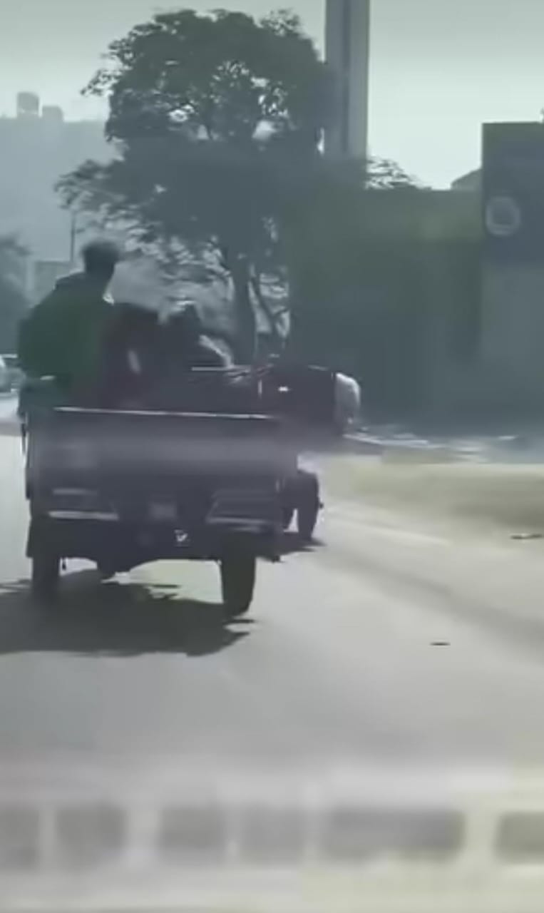 وتضمن مقطع الفيديو، مشاهد لـ تروسيكل يسير بسرعة عالية، وبحوزة مستقليه كميات من الحديد المسلح، فيما بدت أثار تناثر الحديد والأسمنت على الطريق العام.