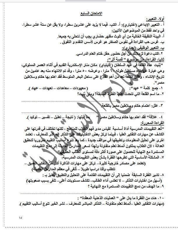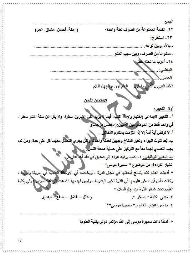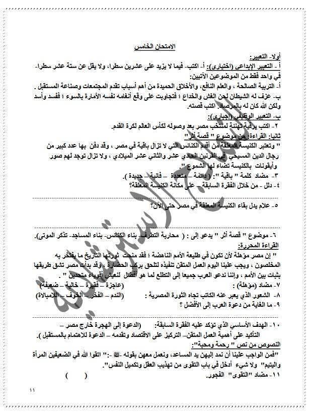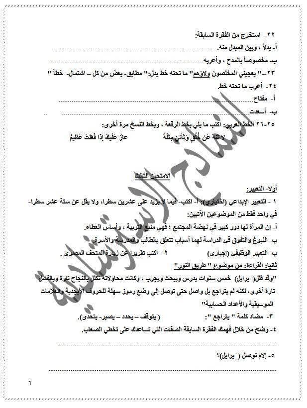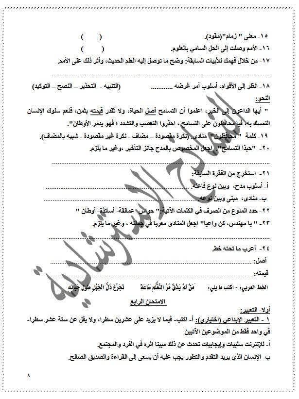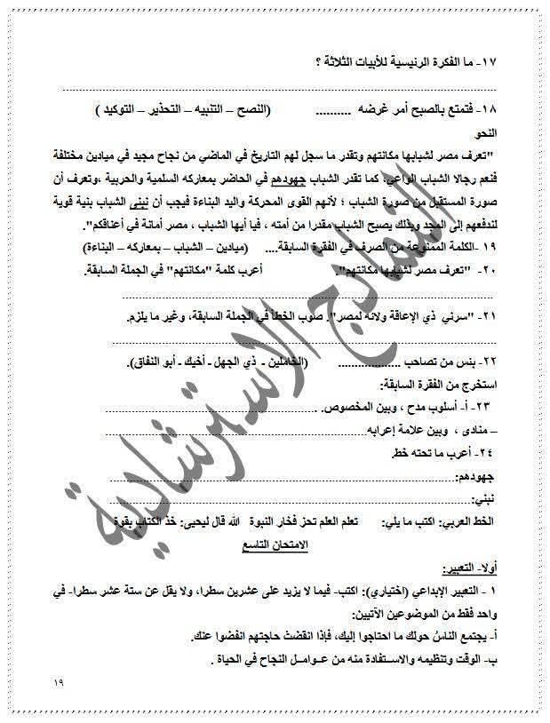 نماذج استرشادية للصف الثالث الإعدادي عربي