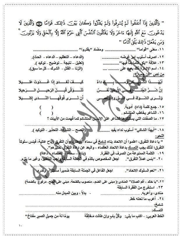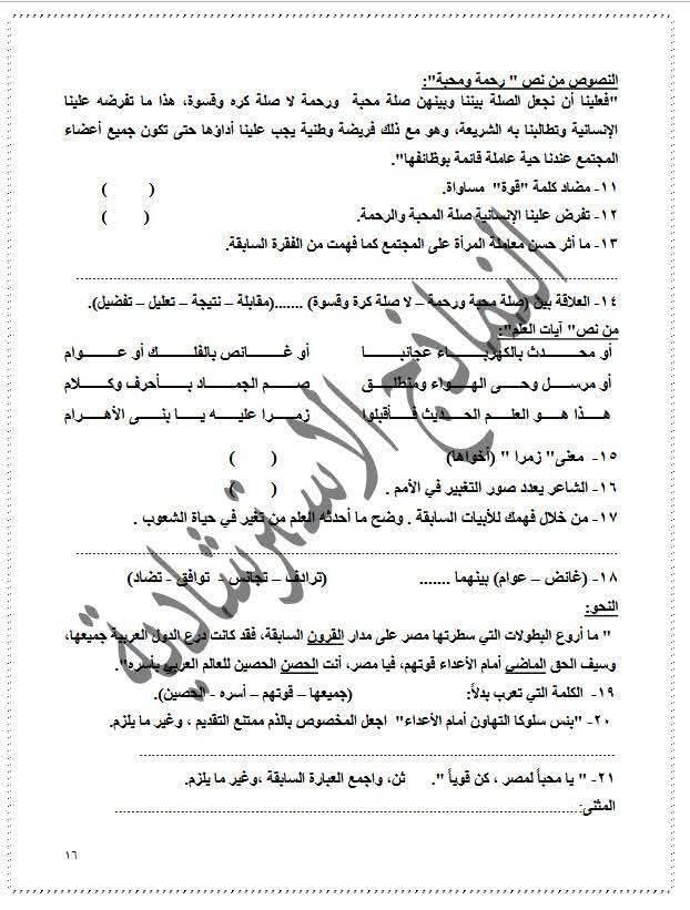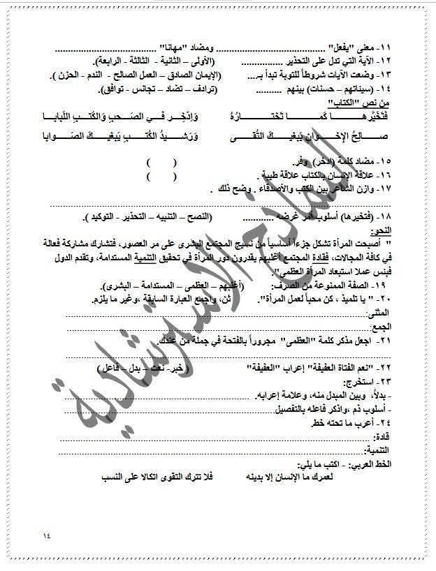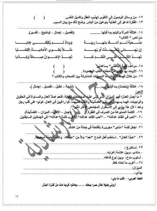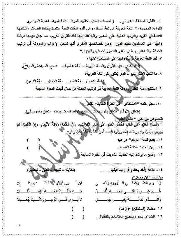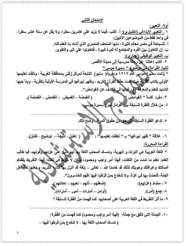 ويتمكن طلاب الشهادة الإعدادية من مراجعة مادة اللغة العربية من خلال النماذج الاسترشادية التالية: