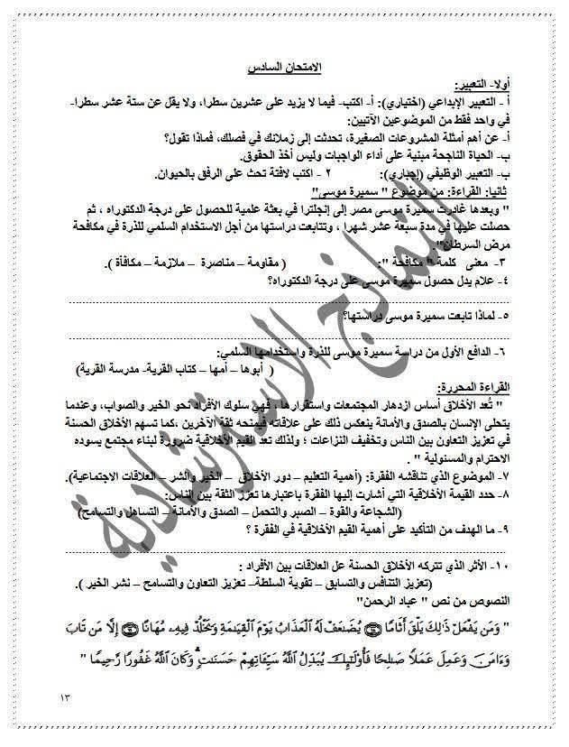 نماذج امتحان دين للصف الثالث الإعدادي، أهم الأسئلة