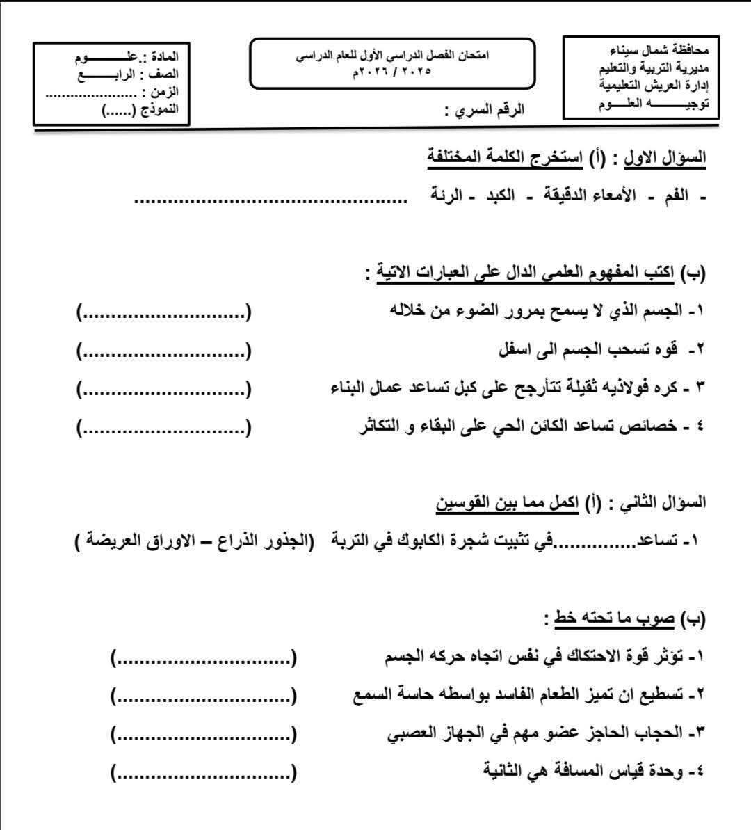 ويستطيع الطلاب الاطلاع نماذج امتحانات العلوم للصف الرابع الابتدائي الترم الأول 2026 من خلال الصور التالية: