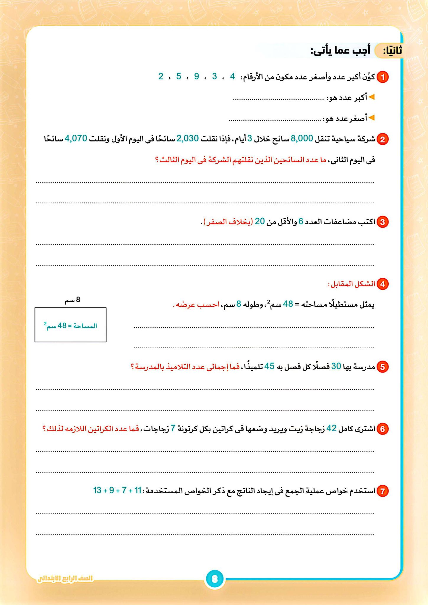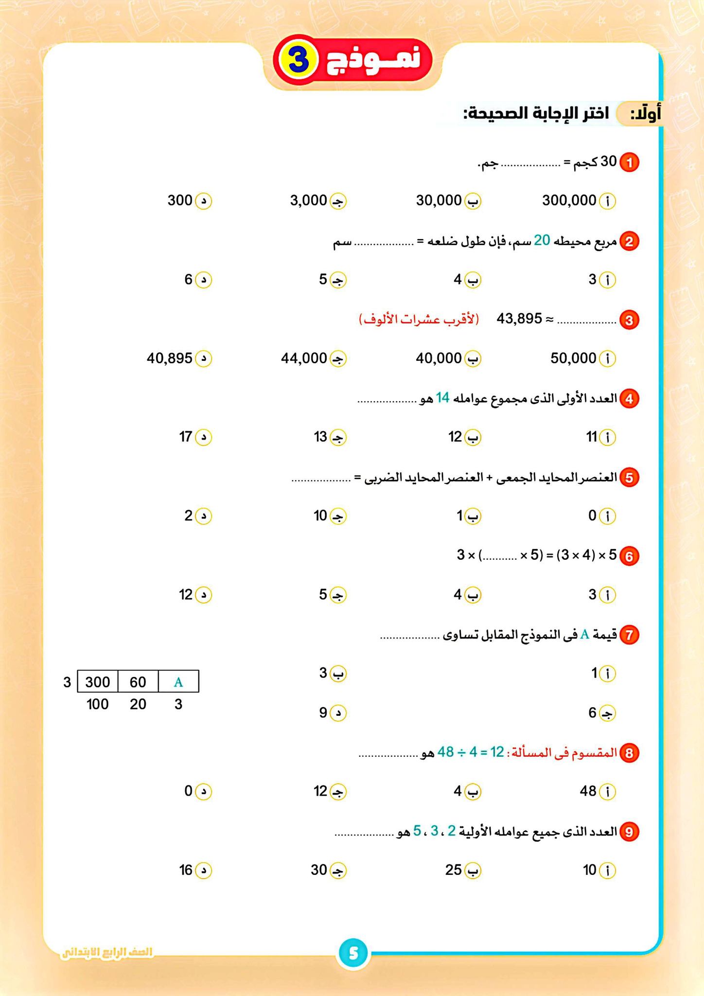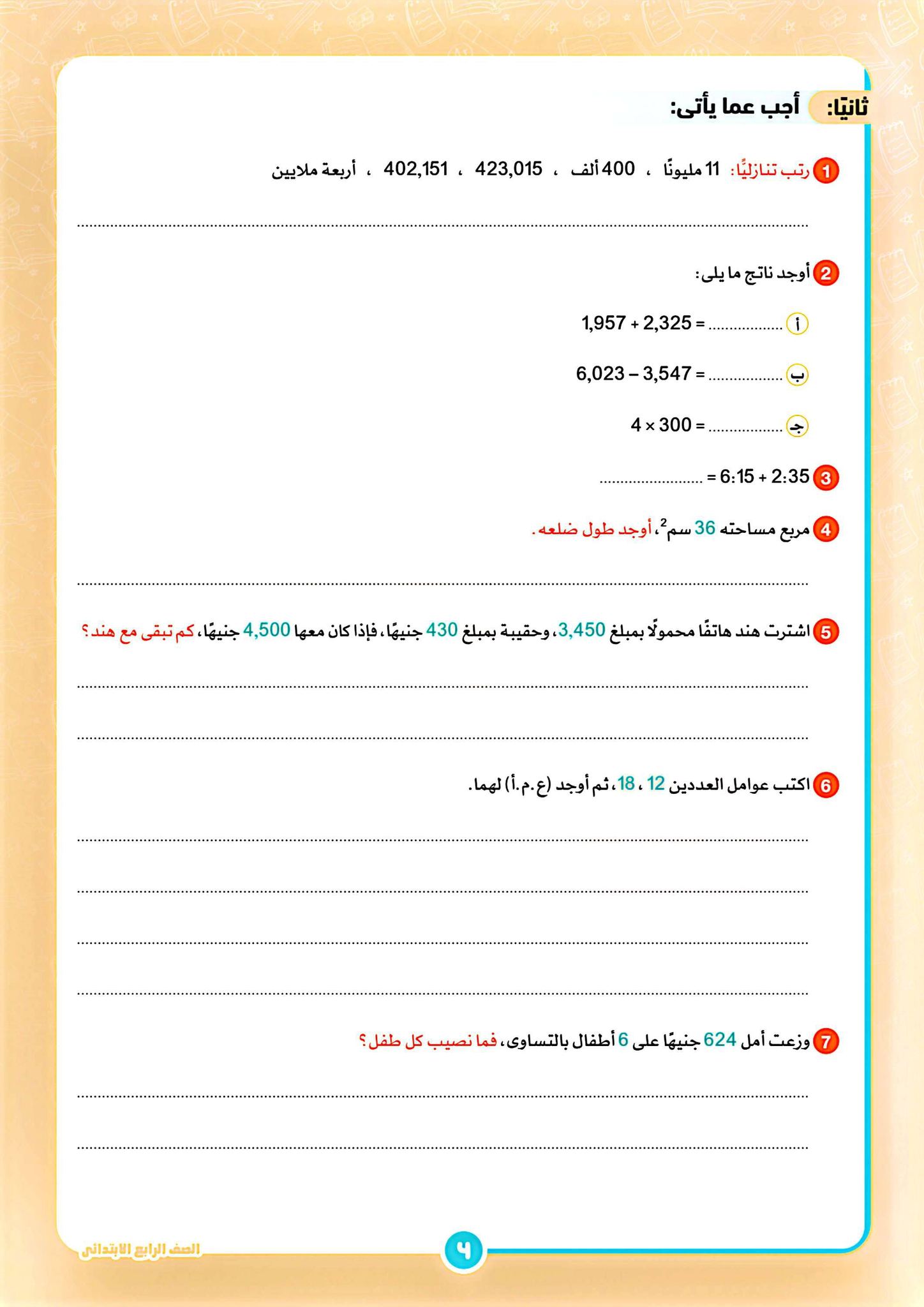 مراجعة رياضيات الصف الرابع الابتدائي 2026