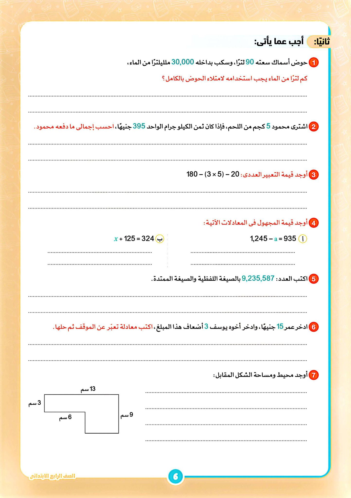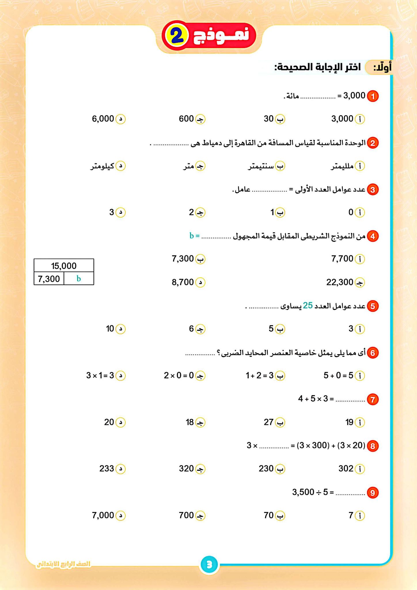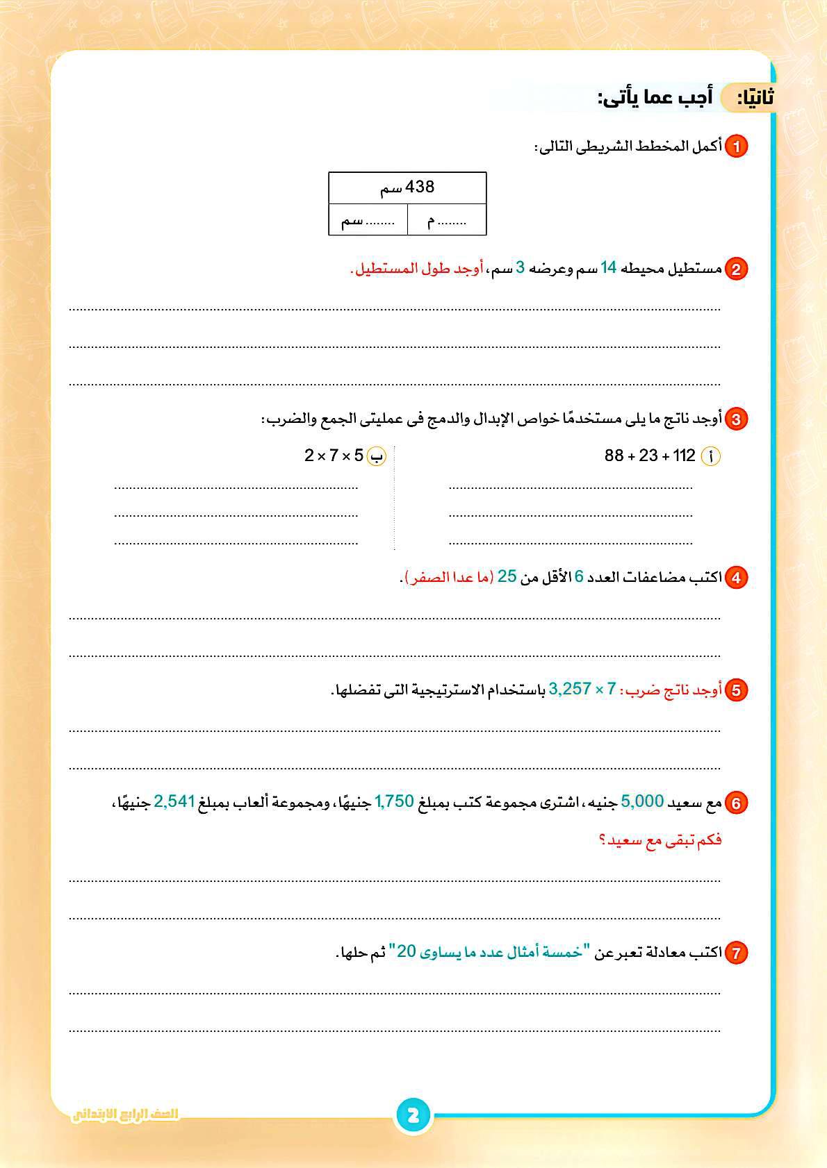 مراجعة رياضيات الصف الرابع الابتدائي 2026