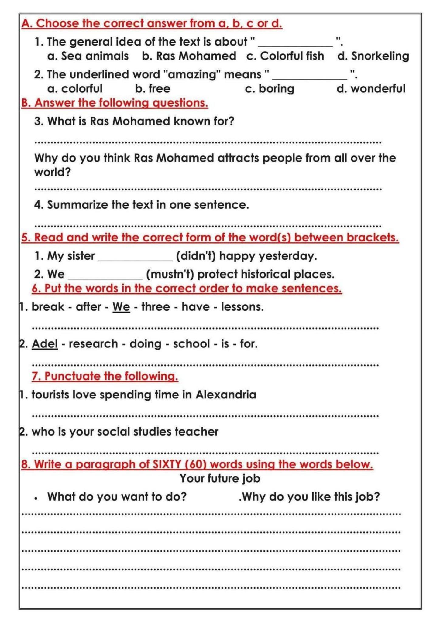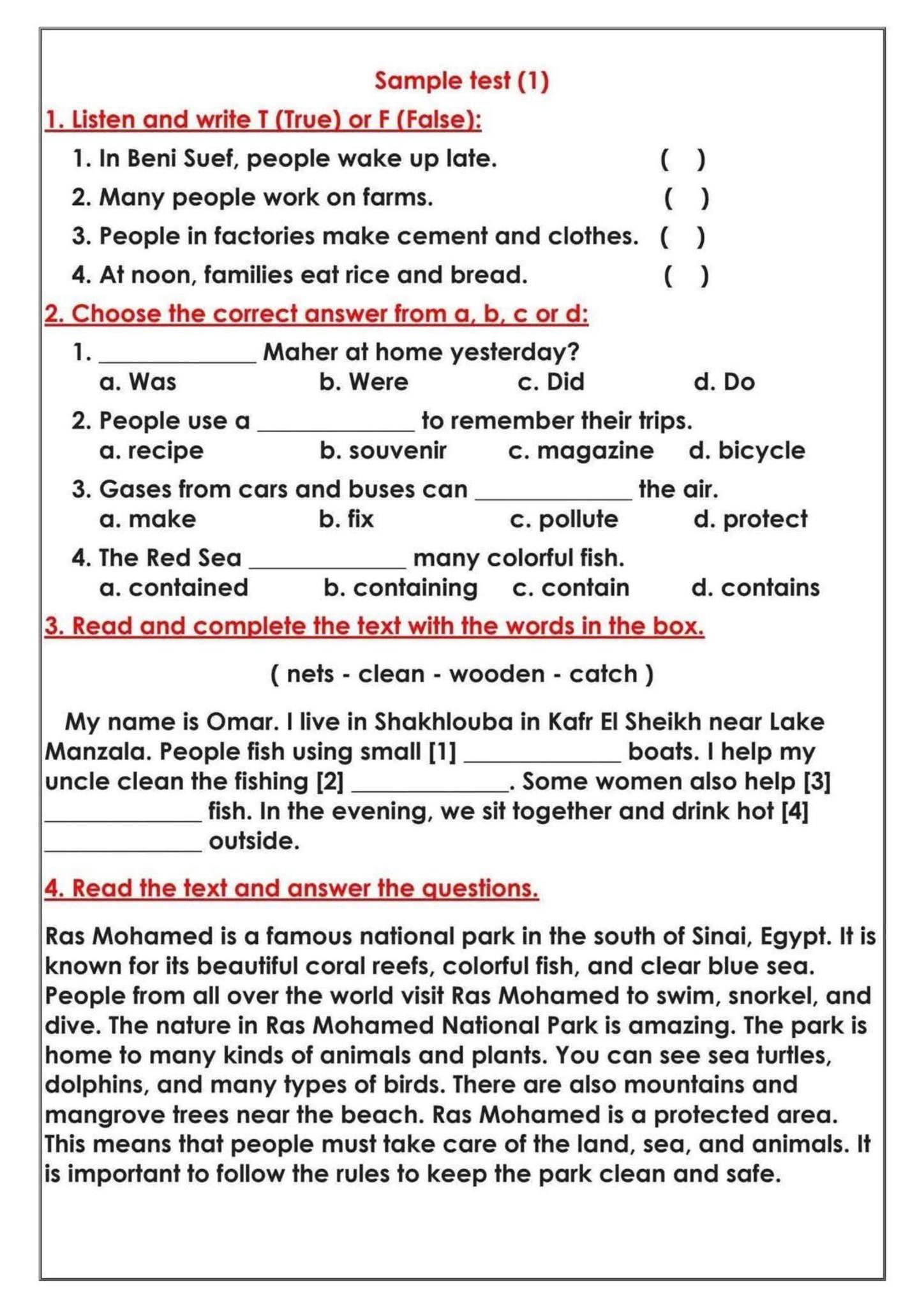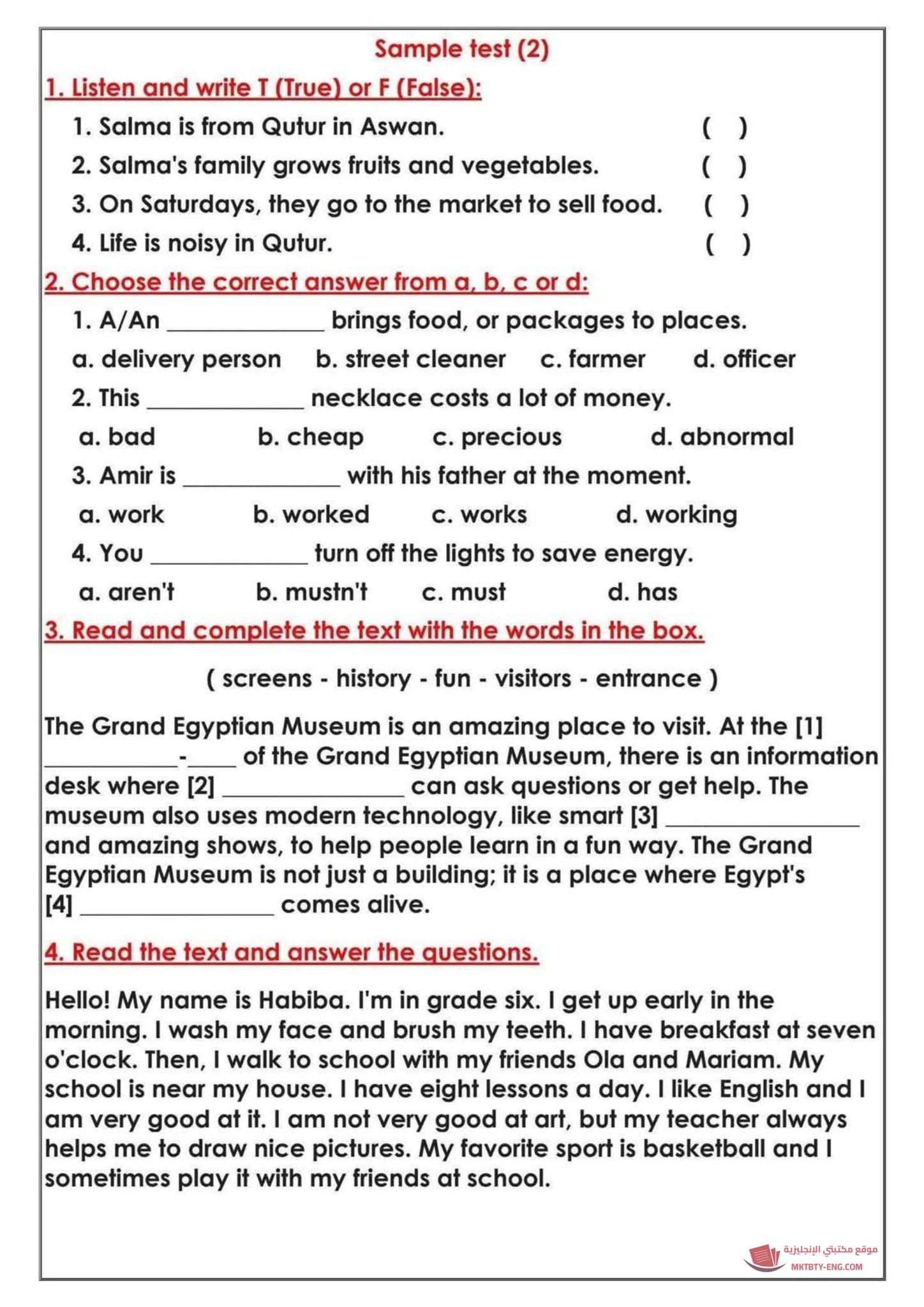 امتحان إنجليزي للصف السادس الابتدائي 2026