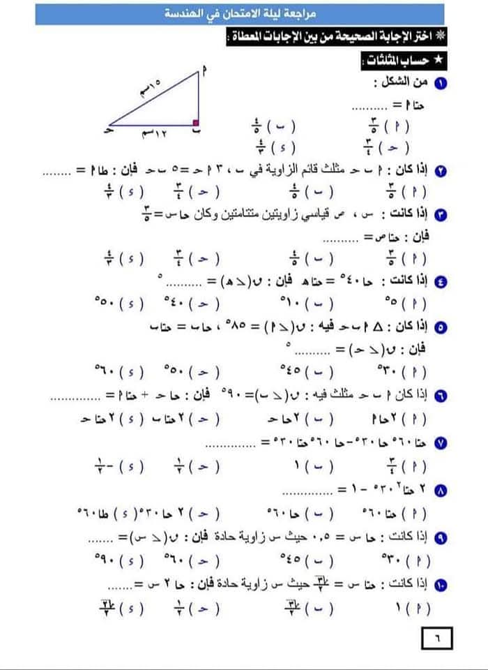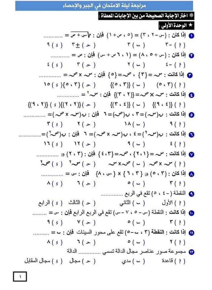 ونستعرض مراجعة رياضيات للشهادة الإعدادية الترم الأول 2026 خلال الصور التالية: