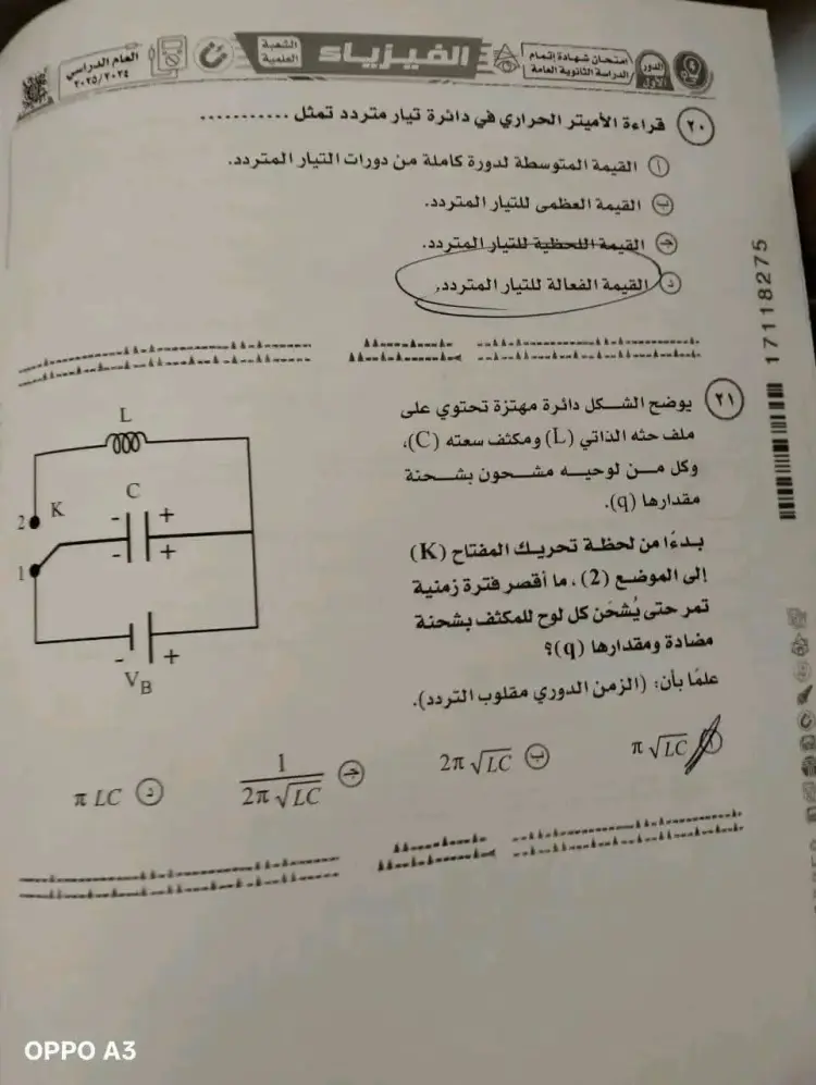 ورقة امتحان الفيزياء ثانوية عامة 2025